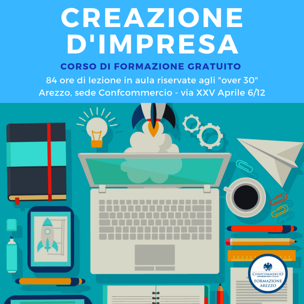 L’area formazione di Confcommercio Arezzo apre un nuovo corso gratuito sulla creazione d’impresa, dedicato agli over 30 che vogliono saperne di più su come si apre e si gestisce un’attività in proprio nei settori commercio, turismo e servizi, ma anche nel campo della libera professione.