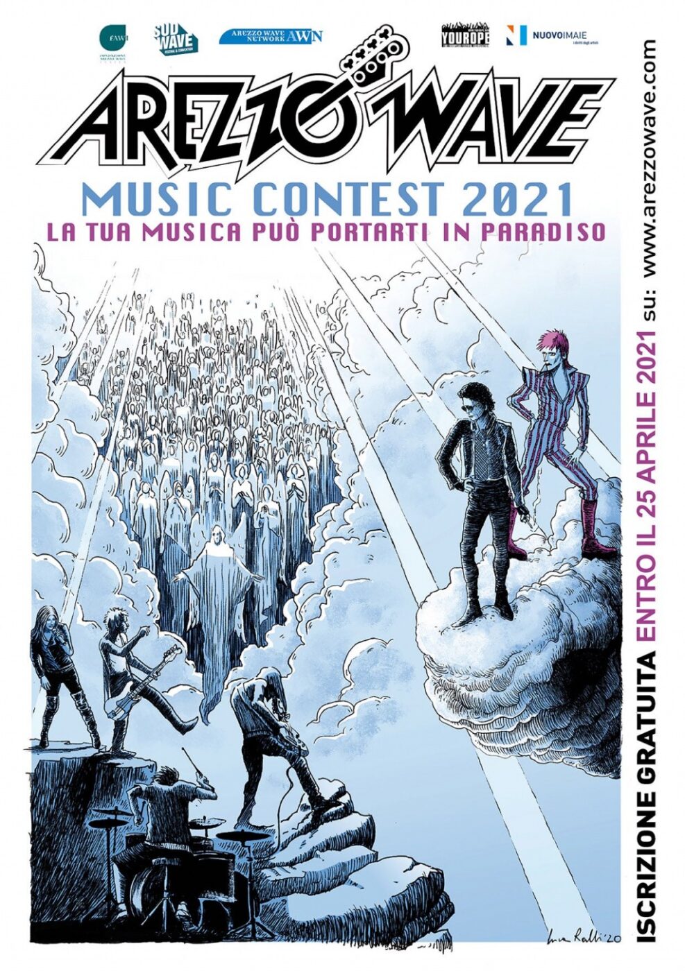 “La tua musica può portarti in Paradiso!”, come dice lo slogan che campeggia sull’immagine del concorso realizzata da Luca Ralli, uno dei più grandi disegnatori e illustratori per l’editoria.