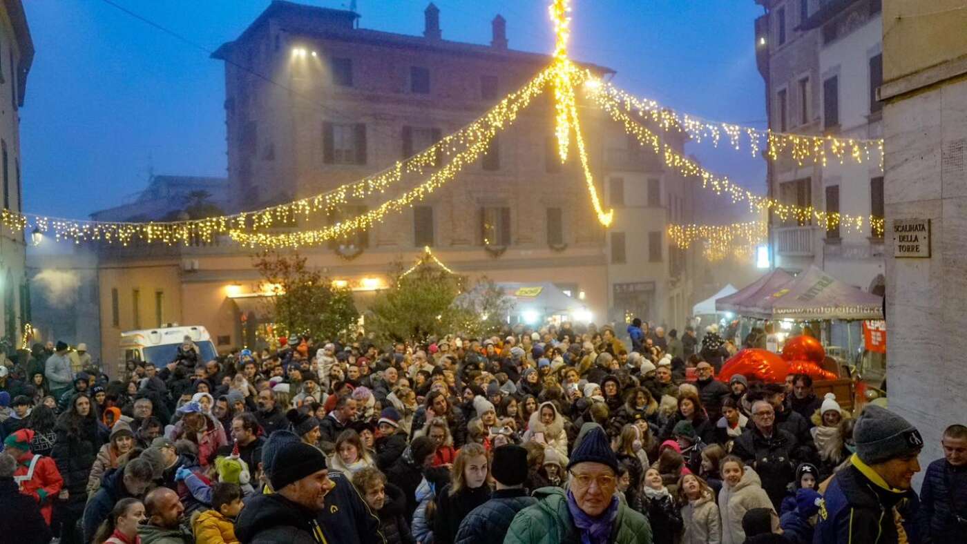 Il centro storico si è trasformato in un vero villaggio natalizio, animato da musica, intrattenimento per bambini, degustazioni e iniziative diffuse che hanno coinvolto famiglie e curiosi per tutto il pomeriggio. Tra i momenti più emozionanti, la spettacolare discesa di Babbo Natale dalla Torre Civica, la nevicata scenografica e la merenda con i bomboloni offerti, che hanno regalato sorrisi e stupore, soprattutto ai più piccoli, creando immagini destinate a restare nella memoria collettiva della città.