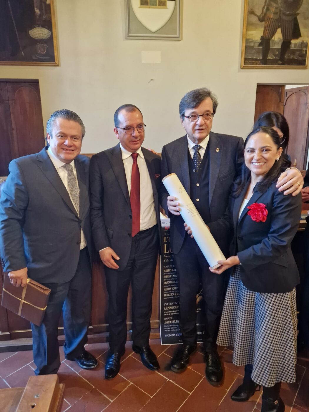 Ospiti speciali dell’evento sono stati Javier Arturo Ferrer Báez e Ricardo Obert, del Gruppo Salinas e responsabili del progetto “Redescubriendo un Genio: Luca Pacioli”, i quali hanno rivolto un affettuoso ringraziamento all’Amministrazione comunale e al sindaco Innocenti dopo aver brevemente illustrato il valore internazionale della figura pacioliana e le iniziative di valorizzazione a livello globale.