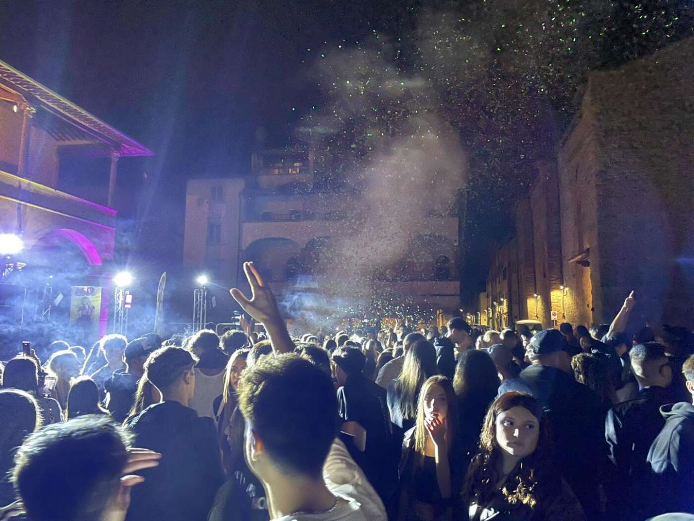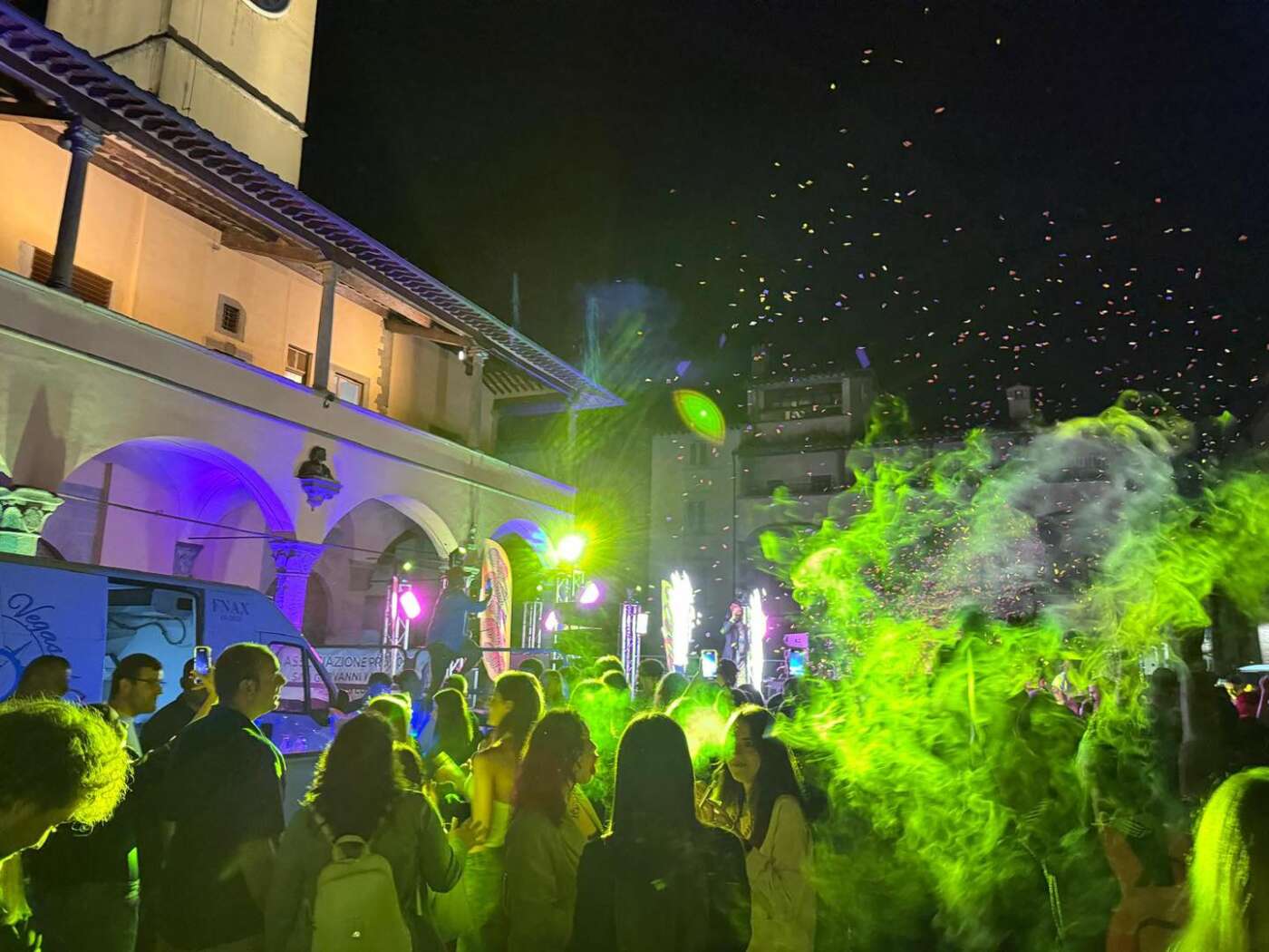 La serata è stata un autentico concentrato di musica, divertimento ed energia: i dj set trascinanti di dj Mad e dj Nava hanno fatto ballare senza sosta il pubblico con i grandi successi degli anni Duemila e tanta musica elettronica, mentre il suggestivo video mapping di Stefano Fake & The Fake Factory, le spettacolari fontane di luci e le esplosioni di coriandoli hanno trasformato la piazza in un palcoscenico mozzafiato, capace di lasciare tutti a bocca aperta