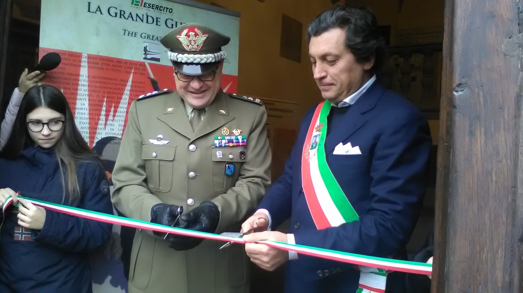 Dopo il taglio del nastro, la cerimonia si è spostata nella sala San Michele dove il Generale di Divisione Pietro Tornabene, attraverso un interessante intervento, ha ricostruito gli eventi che hanno portato allo scoppio della Prima Guerra Mondiale ed al successivo intervento dell’Italia nel conflitto.