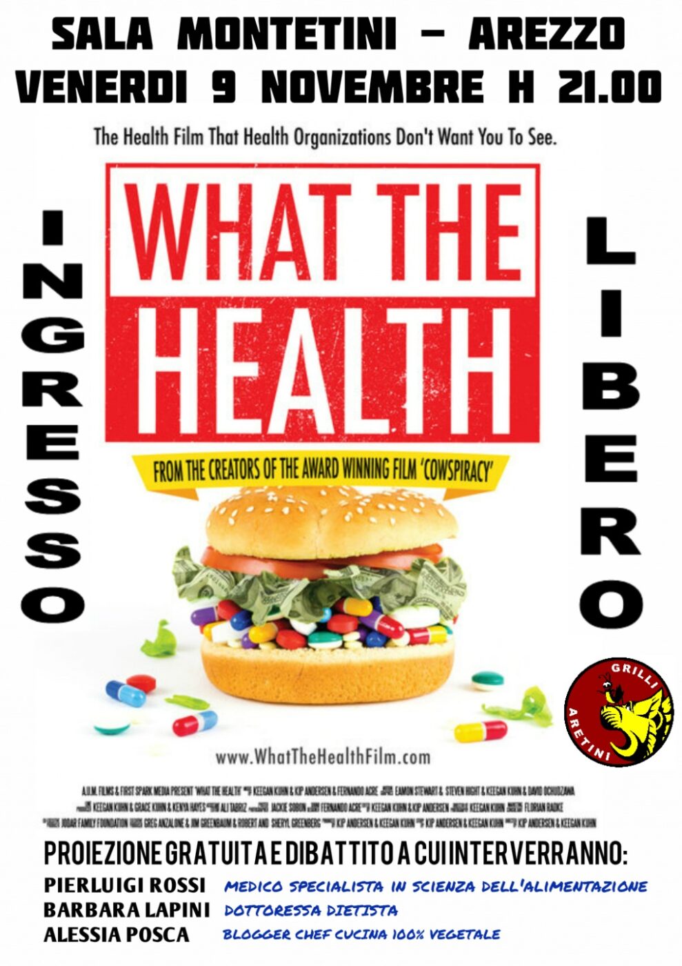 Venerdi 9 novembre alle 21 proiezione “What the Health” sala Montetini Arezzo
