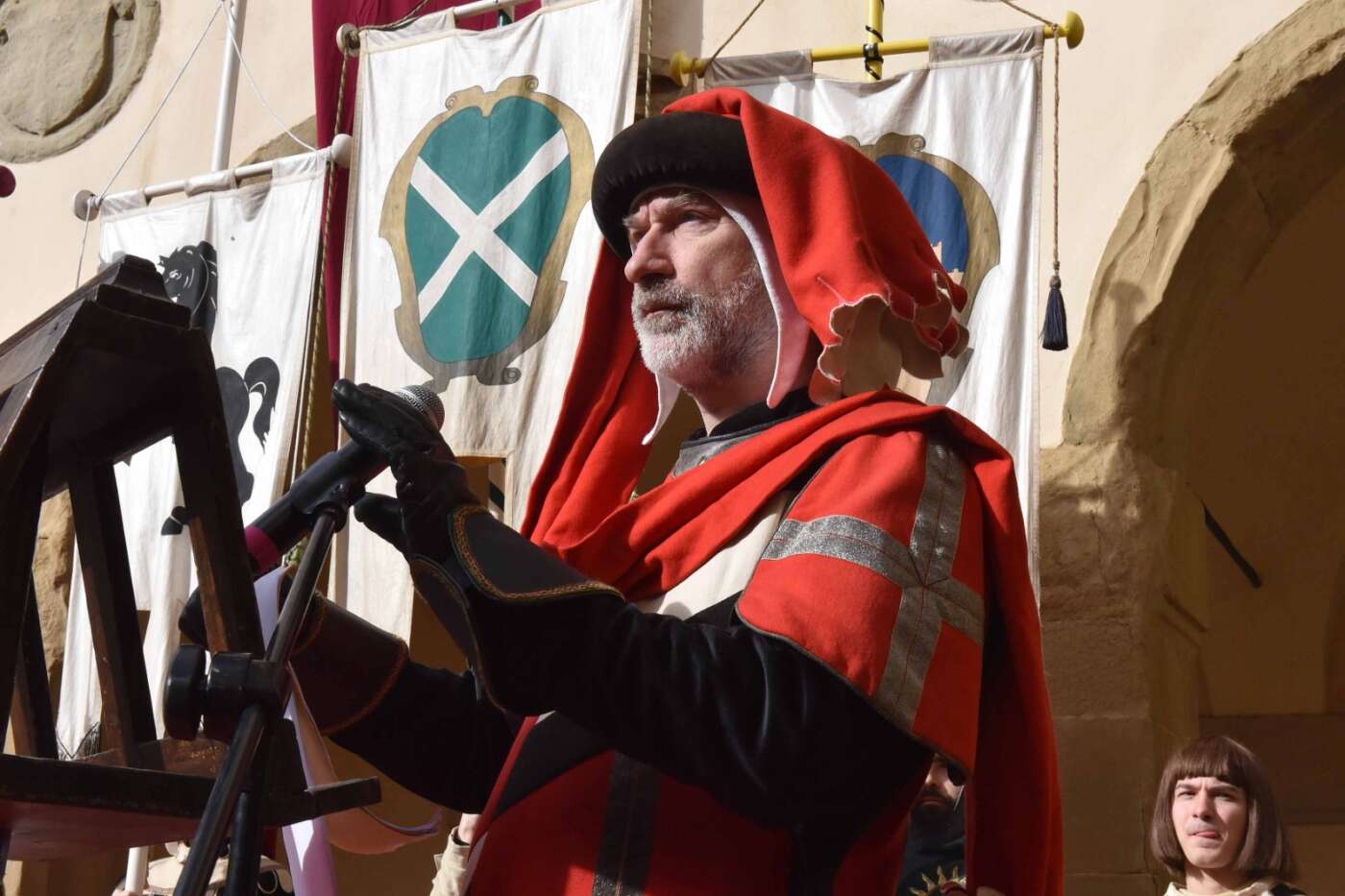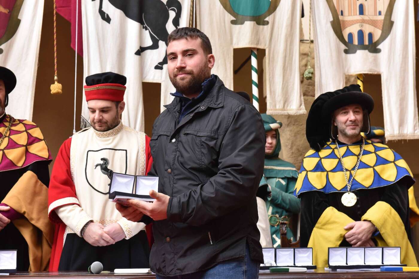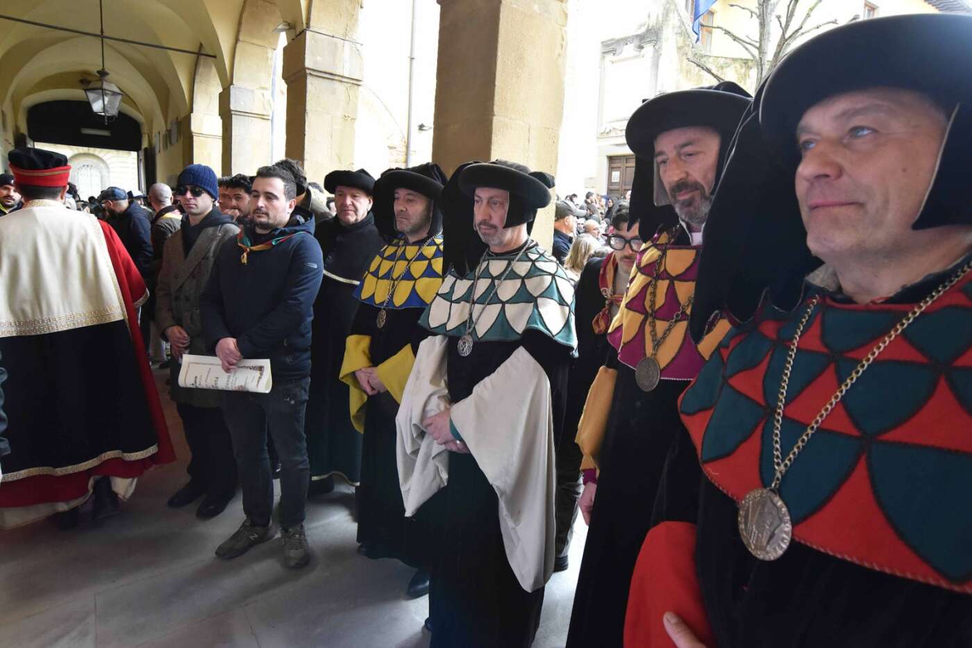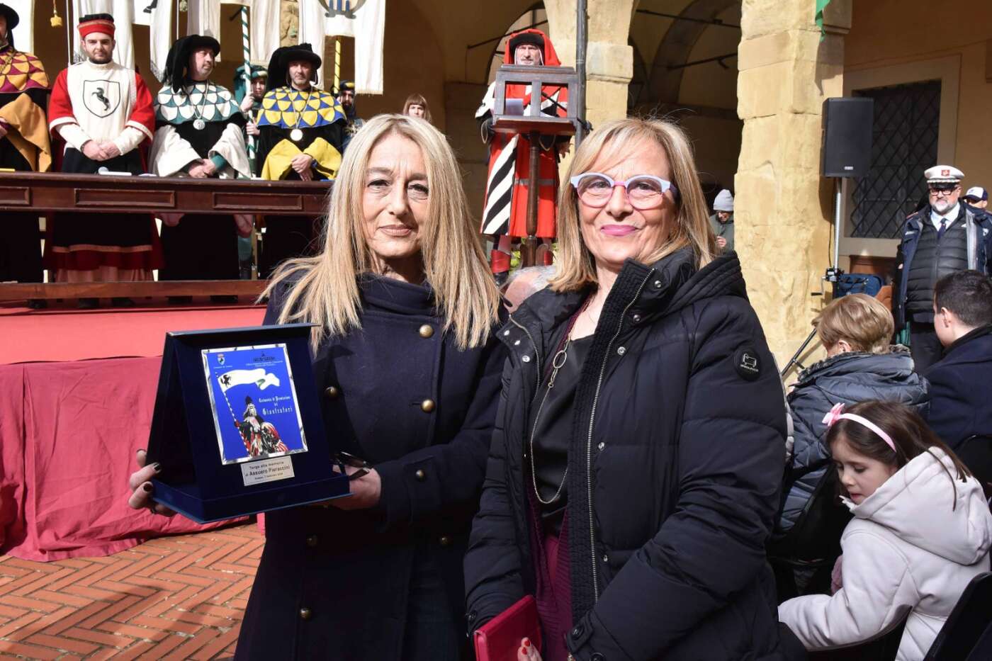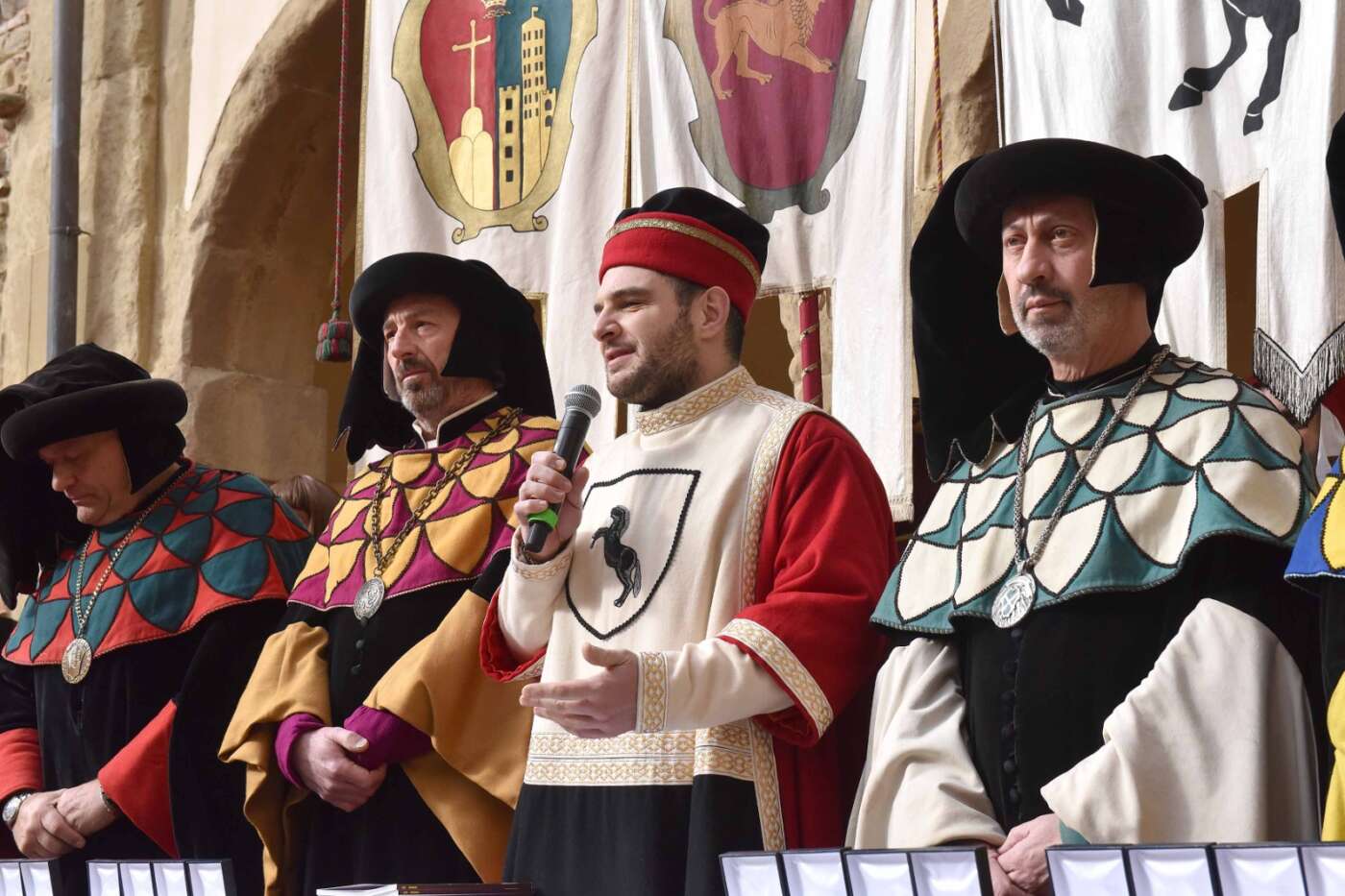 Dopo l’introduzione dell’assessore ha preso avvio la solenne cerimonia con la consegna del Premio “Fulvio Tului”, giunto all’undicesima edizione e consegnato ai quartieri che hanno sfilato meglio nelle edizioni 2025 della Giostra del Saracino: Porta del Foro a giugno, Porta Sant’Andrea a settembre. Presenti alcuni dei giudici del Premio Tului ai quali è stata assegnato un attestato in segno di riconoscimento.