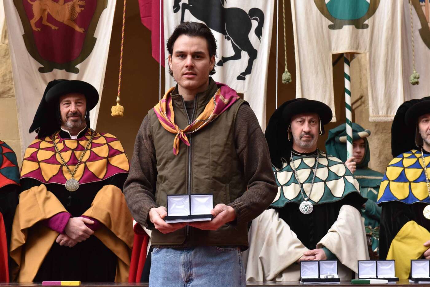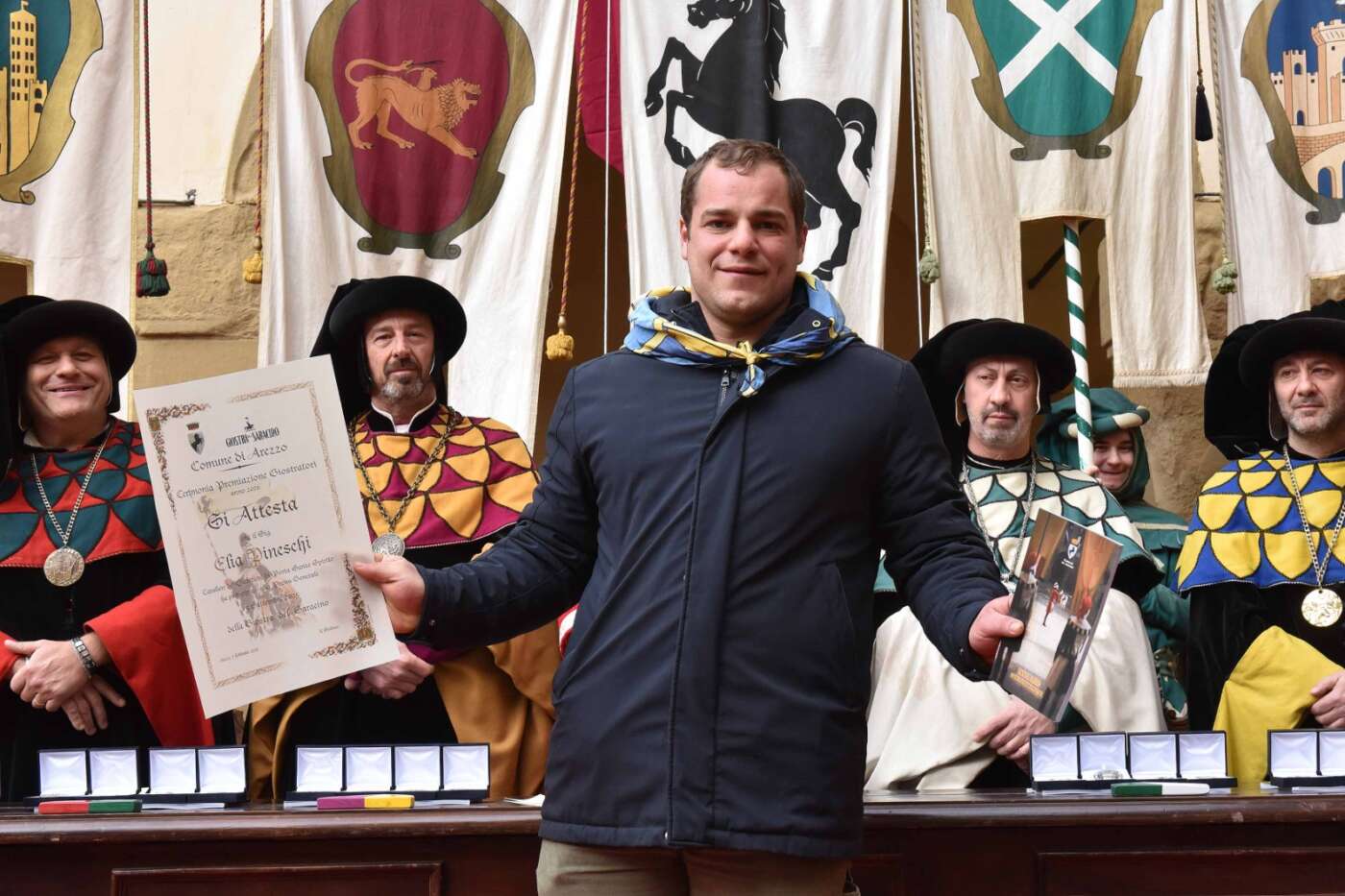 Questa mattina si è svolta la trentaduesima edizione della cerimonia di premiazione dei giostratori. Nel Chiostro di Palazzo Comunale l’assessore allo sport e politiche giovanili Federico Scapecchi ha premiato i giostratori protagonisti delle due edizioni della Giostra del Saracino e delle Prove Generali del 2025, alla presenza dei rettori dei quartieri.