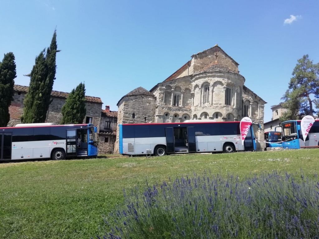 Nuova tappa del percorso di rinnovamento della flotta autobus di Tiemme. Questa volta la suggestiva cornice scelta nel cuore della Toscana è stata quella della Pieve di Romena, nel comune di Pratovecchio, in Casentino, in provincia di Arezzo.