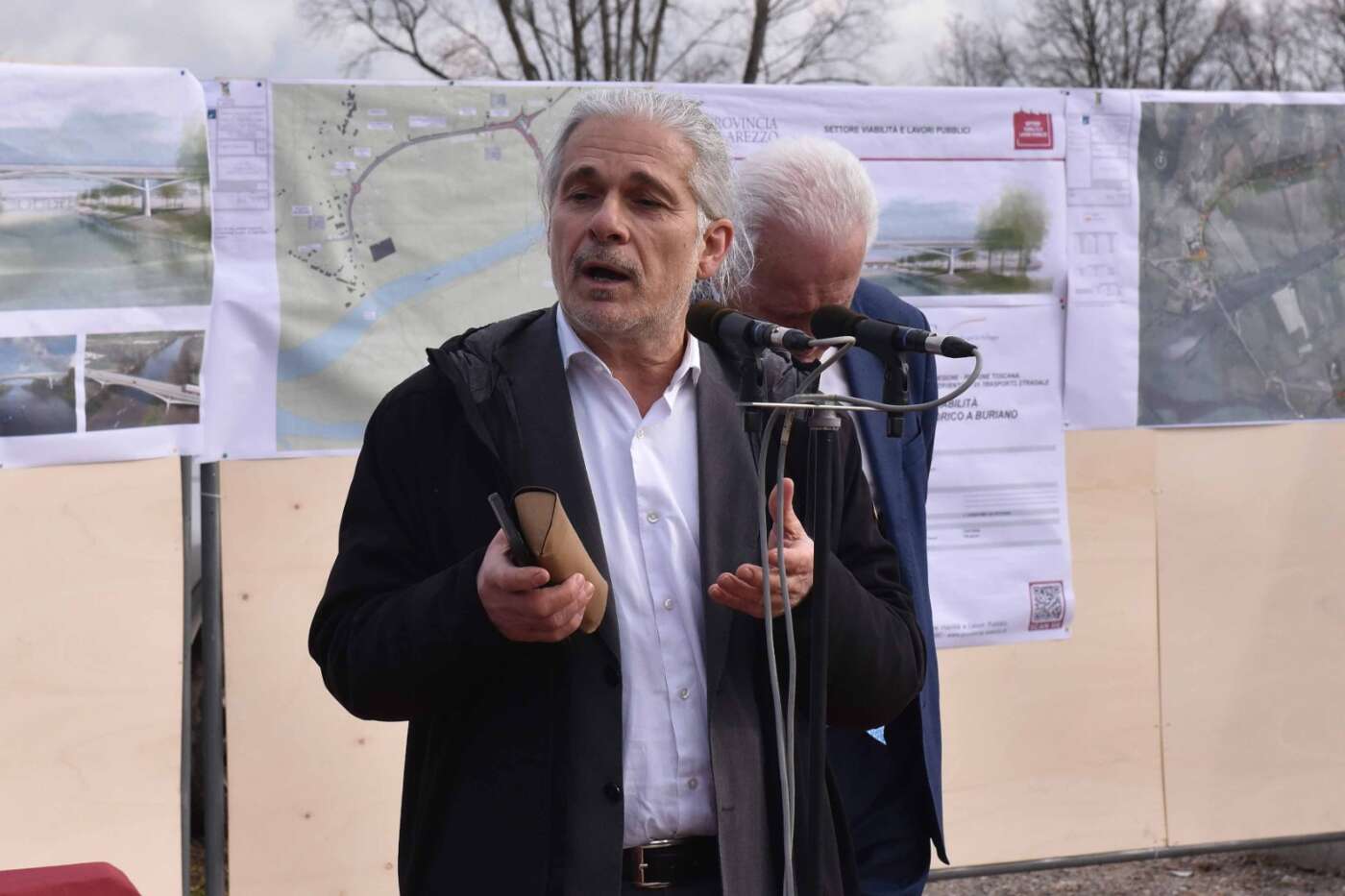 “La posa della prima pietra non è solo un gesto formale, ma un segno tangibile dell’inizio di un’opera attesa, necessaria, frutto di un percorso lungo, complesso e rigoroso, che oggi finalmente si traduce in un cantiere aperto e in un futuro più sicuro per la nostra comunità. Con questa pietra affermiamo la volontà della Provincia di costruire, di investire, di guardare avanti. È il primo passo concreto di un percorso che porterà alla realizzazione del nuovo ponte di Buriano, un’infrastruttura moderna che migliorerà la vita dei cittadini e proteggerà il valore storico del ponte medievale. L’antico manufatto richiamato da Leonardo da Vinci,è parte della nostra identità, della nostra storia, del nostro paesaggio. Per questo era indispensabile intervenire con una soluzione che garantisse, da un lato, la tutela del ponte storico e, dall’altro, una viabilità moderna, efficiente e adeguata alle esigenze di un territorio che cresce e si muove. Quindi non celebriamo, solo l’inizio di un’opera pubblica, celebriamo la capacità di un territorio di guardare avanti, di costruire un’infrastruttura sicura e funzionale. Consentirà di alleggerire il traffico sul ponte medievale, preservandolo e valorizzandolo. Garantirà collegamenti più rapidi e più sicuri tra il Valdarno e Arezzo. Sarà un’opera al servizio della comunità, pensata per durare e per rispondere alle esigenze dei prossimi decenni. Un progetto che nasce da un lavoro corale tra le amministrazioni, tecnici, professionisti, enti di tutela, cittadini che desidero ringraziare.Questa è la dimostrazione concreta di come si possano trasformare le idee in opere durature per il territorio. Un lavoro che ha richiesto studio, confronto, verifiche, conferenze di servizi, indagini archeologiche, progettazioni successive, fino all’approvazione definitiva e all’affidamento dei lavori. Un percorso amministrativo e progettuale concluso con successo, ed è un’eccezione nel pubblico. Non capita spesso che nell’ambito del proprio mandato, il Presidente di Provincia, veda anche la fase della realizzazione, su questo c’è stata una grande spinta, grazie alla struttura del nostro ente. L’intervento è pari a 21 milioni di euro, finanziato con risorse del Fondo per lo Sviluppo e la Coesione (FSC) 2021/2027 Accordo per la Coesione – Delibera CIPESS 28/2024 e DGRT n. 940/2024. La durata dei lavori sarà di 720 giorni. Sarà un percorso impegnativo, che seguiremo con attenzione, trasparenza e responsabilità. La Provincia sarà presente, ogni giorno, per assicurare che l’opera proceda nel rispetto dei tempi, della qualità e della sicurezza.”