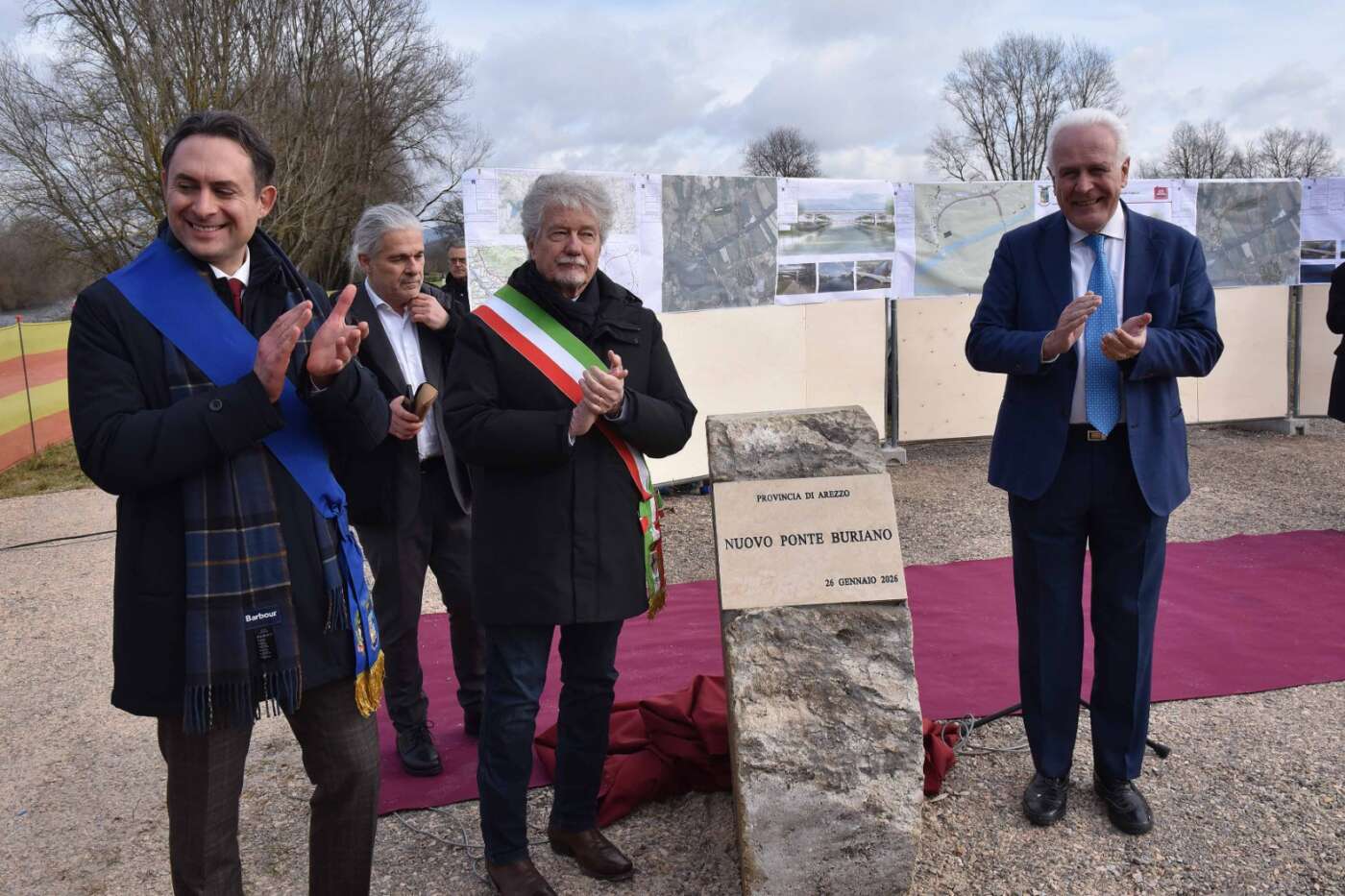 Un nuovo ponte attraverserà il fiume Arno nei pressi dell’antico Ponte Buriano, con l’obiettivo di rendere più fluida e sicura la viabilità, ma anche di tutelare l’infrastruttura romanica, nota nel mondo perché ritratta anche da Leonardo da Vinci negli sfondi delle sue opere. La posa della prima pietra, atto simbolico che segna l’inizio della realizzazione della nuova struttura, è avvenuta oggi ad opera dal presidente della Regione Toscana Eugenio Giani, del presidente della Provincia di Arezzo Alessandro Polcri, del sindaco di Arezzo Alessandro Ghinelli, del Soprintendente Gabriele Nannetti e dell’assessore regionale a trasporti e infrastrutture Filippo Boni.