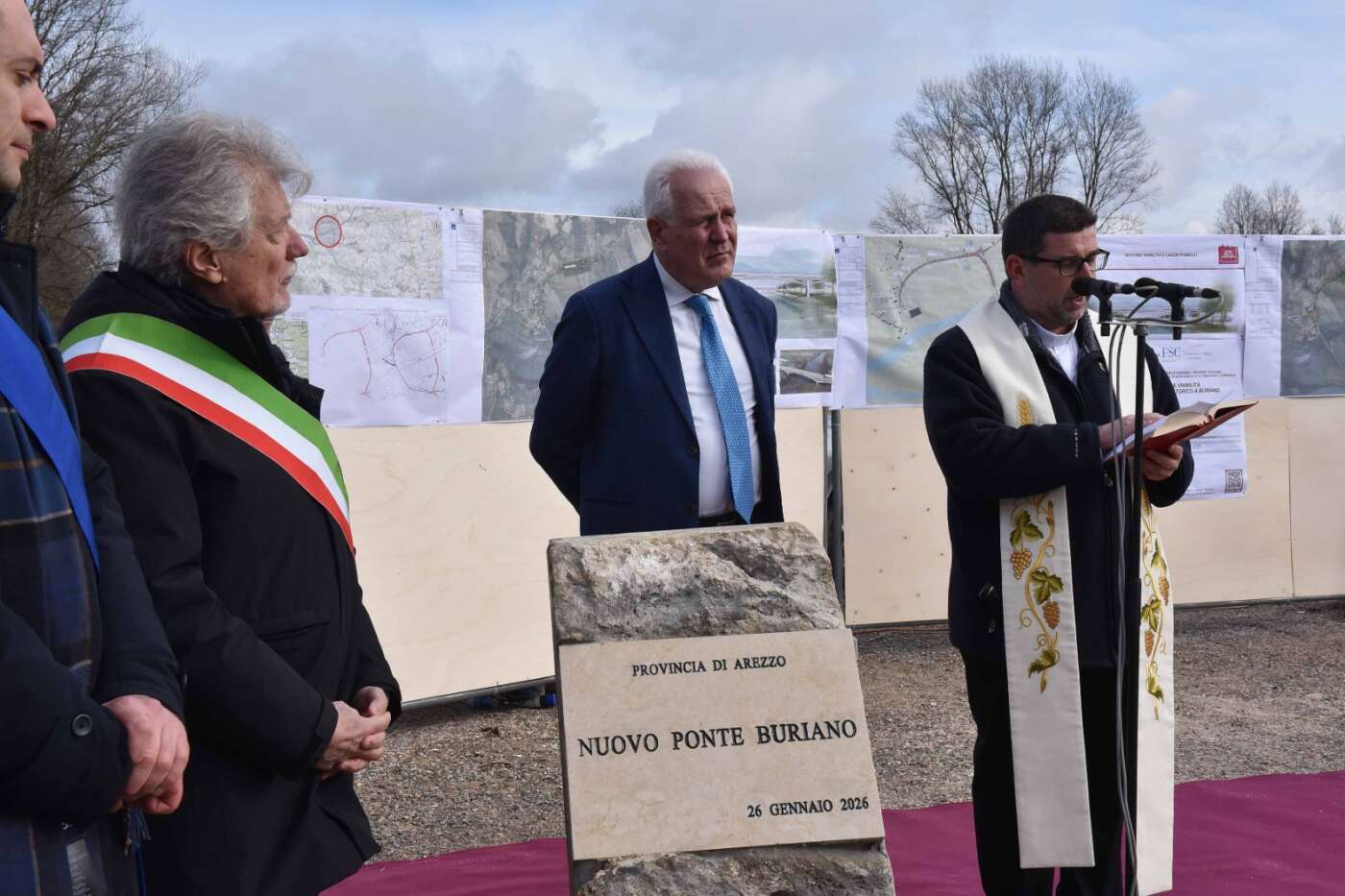 “La posa della prima pietra del nuovo ponte a Buriano rappresenta un momento di grande importanza per il nostro territorio. Si tratta di un’opera strategica, di alto valore strutturale e ingegneristico, pensata per garantire sicurezza, efficienza e continuità alla viabilità, rispondendo alle esigenze attuali e future della comunità. Questo intervento nasce dalla consapevolezza che il ponte storico, pur conservando un valore identitario e testimoniale, non era più in grado di assicurare gli standard necessari. Il nuovo ponte sarà un’infrastruttura moderna, sicura e funzionale, realizzata nel rispetto del contesto e della memoria del luogo, a dimostrazione di come sia possibile coniugare tutela della storia e responsabilità verso il futuro”, ha dichiarato il sindaco Alessandro Ghinelli.”