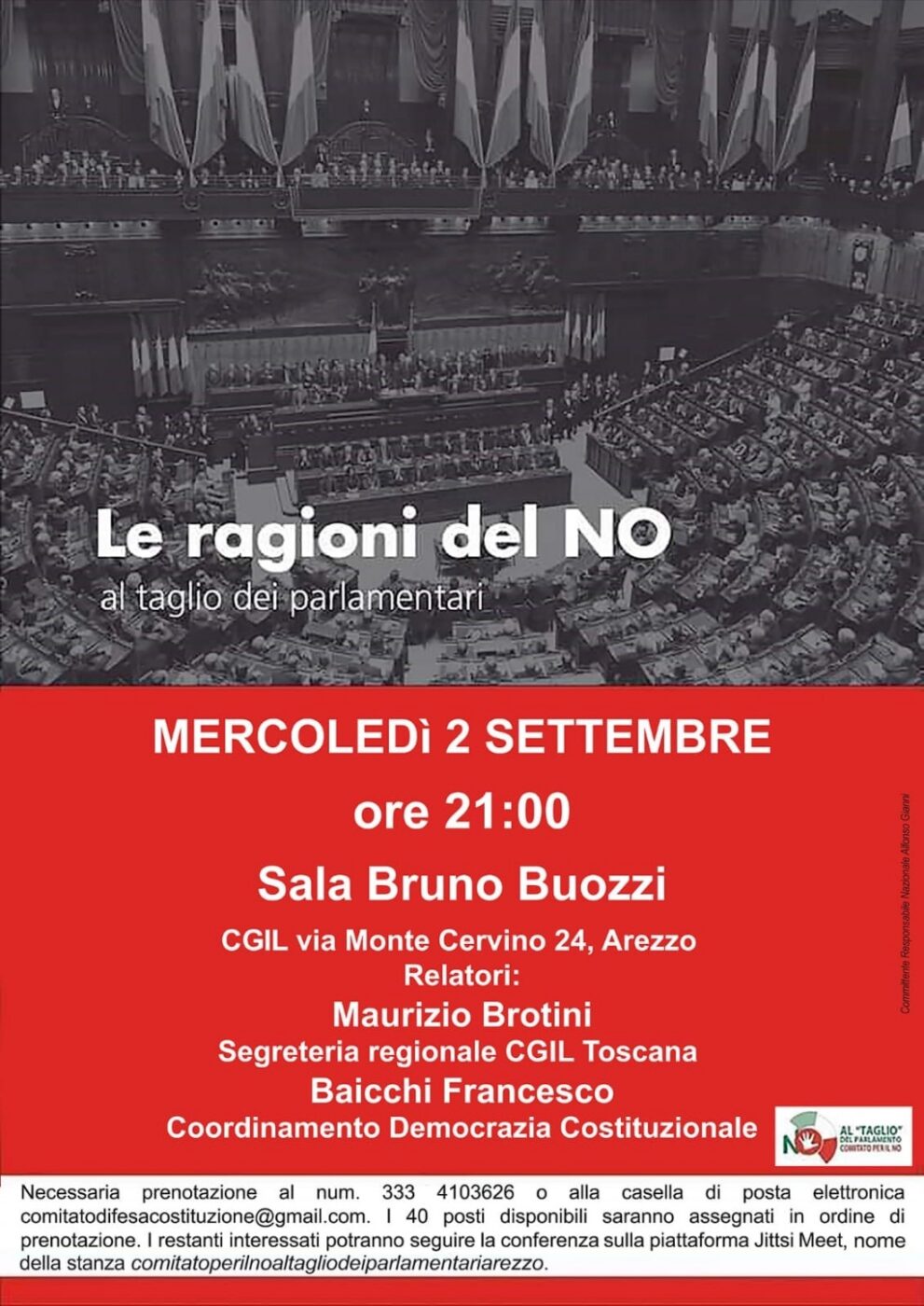 Il ‘‘Comitato per il no di Arezzo al taglio dei parlamentari” organizza un’iniziativa pubblica al fine di spiegare le ragioni del no al referendum costituzionale del 20-21 settembre 2020.