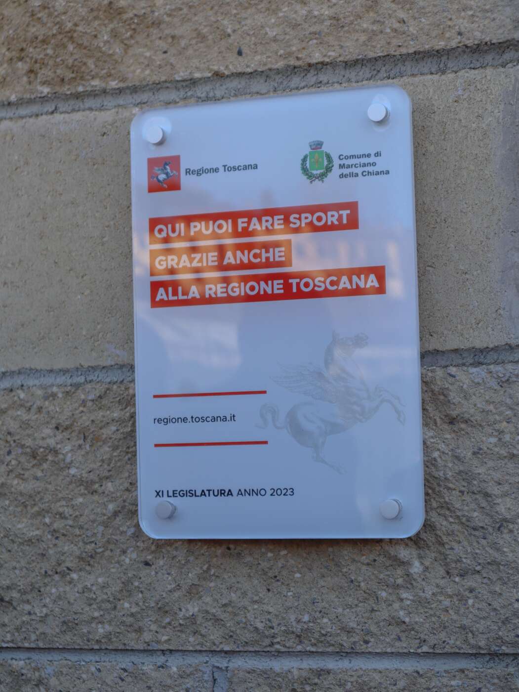 “È una compartecipazione importante quello della Regione ma un grazie va al Sindaco Maria De Palma che ha saputo coordinare e sviluppare al meglio questi contributi che qui a Marciano della Chiana hanno avuto una funzione molto ampia”. A dirlo è il Presidente della Regione Toscana Eugenio Giani che prosegue: Lo sport non è solo divertimento ma è elemento centrale nella vita di una comunità e questo tipo di interventi vanno ad aumentare la qualità della vita in un centro già così prospero come Marciano della Chiana”