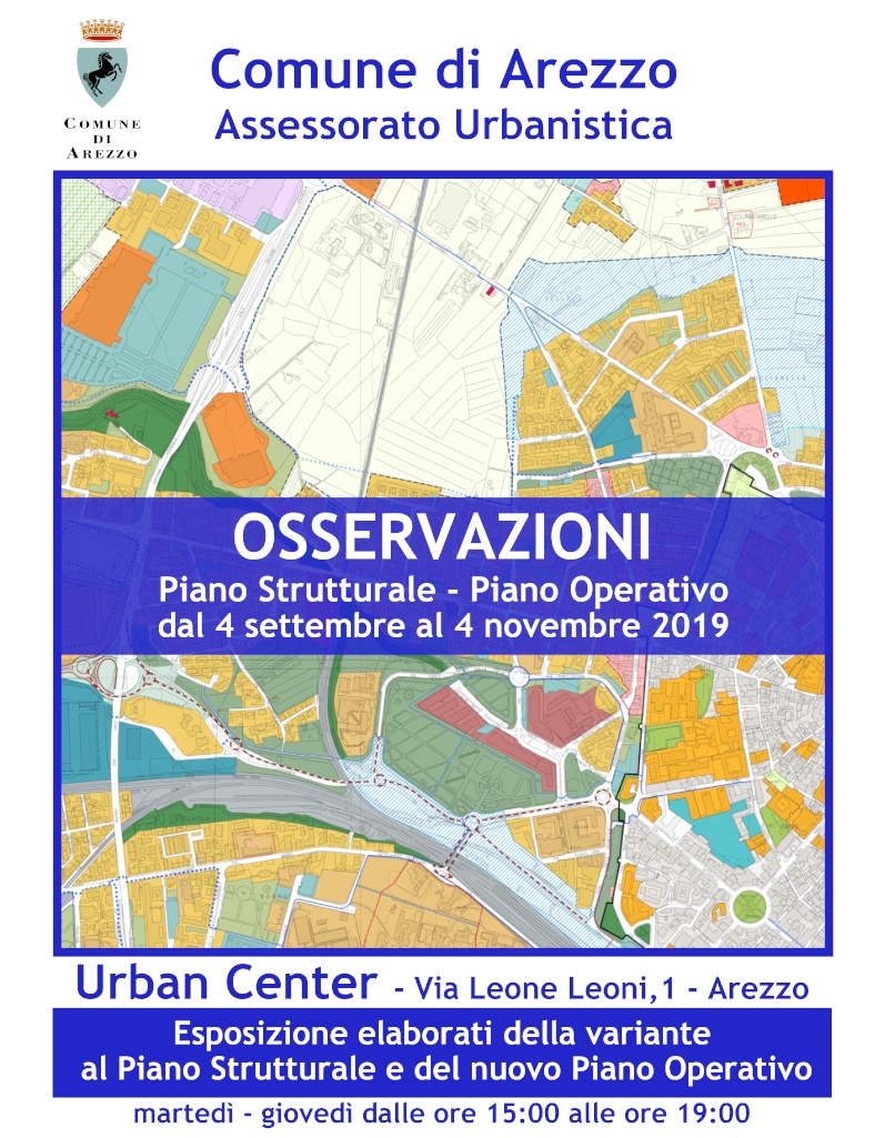 Fino al 4 novembre i cittadini possono prendere visione della variante generale al Piano Strutturale, del nuovo Piano Operativo del Comune di Arezzo e presentare le osservazioni che ritengono opportune. La documentazione completa è online sul sito internet dell’ente.