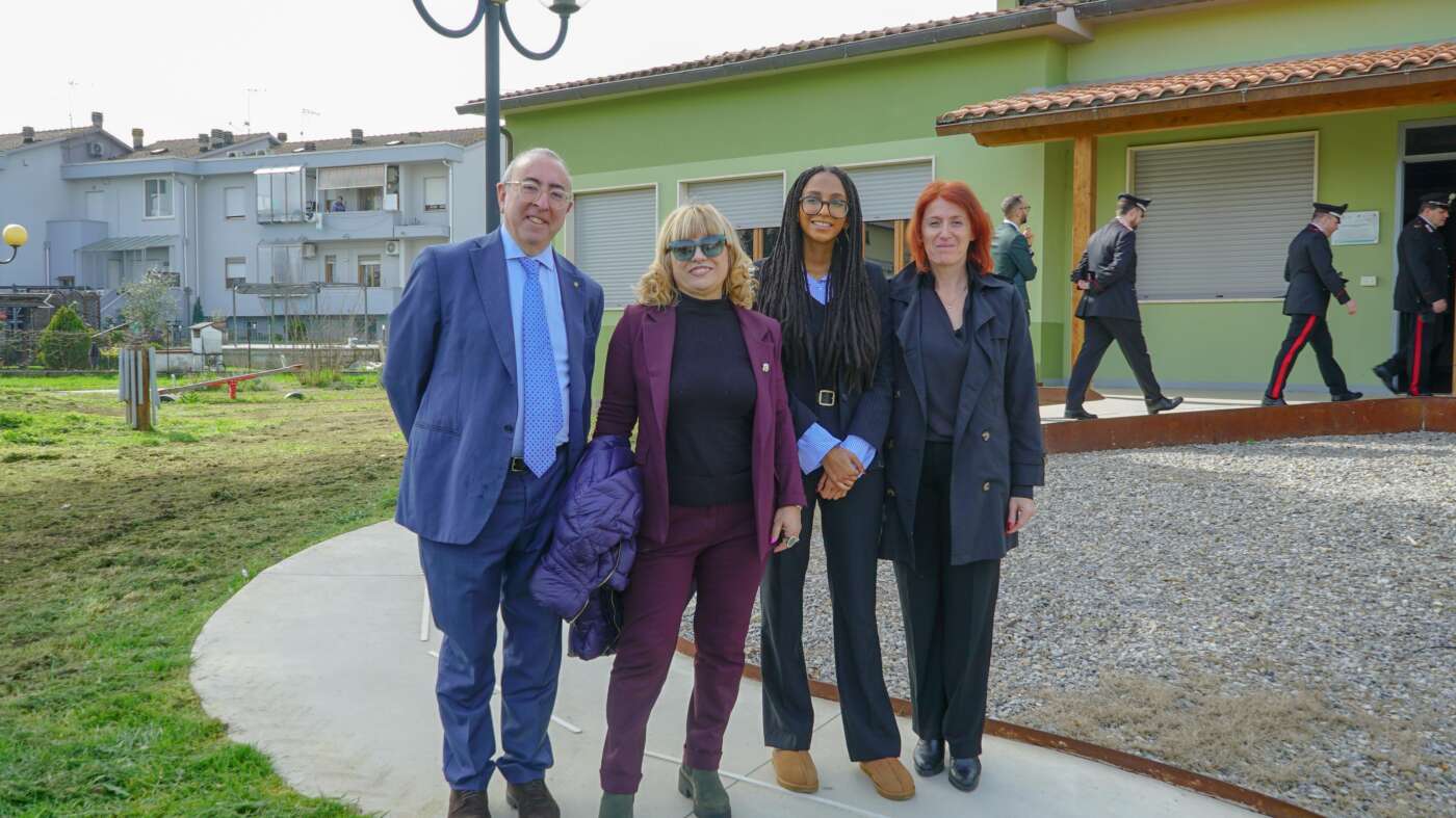 Mia Diop al cantiere degli appartamenti confiscati alla mafia