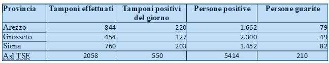 Coronavirus Arezzo: 220 nuovi casi di positività, 79 guariti, 8 ricoverati