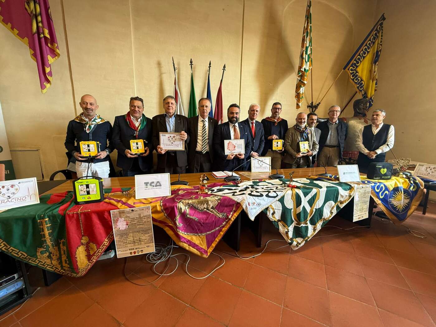 AREZZO – Un’edizione speciale de “Il Saracino del Cuore” rafforza la sicurezza sanitaria nei quartieri della Giostra del Saracino, puntando sulla cardioprotezione e sulla formazione dei volontari. L’iniziativa, promossa da OPI Arezzo con il supporto di Banca di Anghiari e Stia – Credito Cooperativo e TCA SpA, ha portato alla donazione di quattro defibrillatori semiautomatici esterni (DAE) e alla formazione di cento volontari legati ai quartieri della manifestazione storica.
