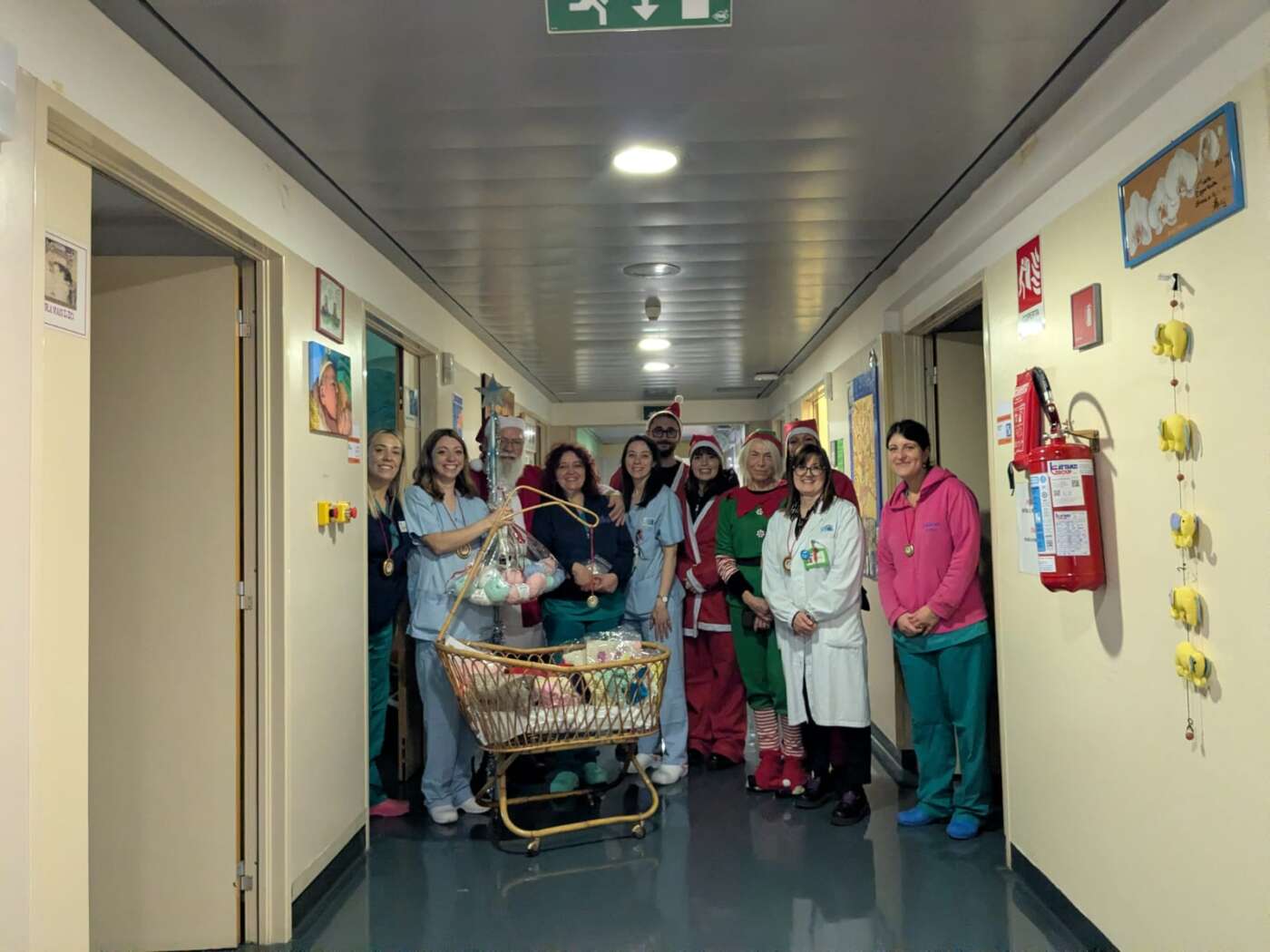 Successivamente, Babbo Natale si è recato in ostetricia per consegnare la lana che sarà trasformata, dalle abili mani delle volontarie, in morbide copertine e caldi cappellini per i neonati.