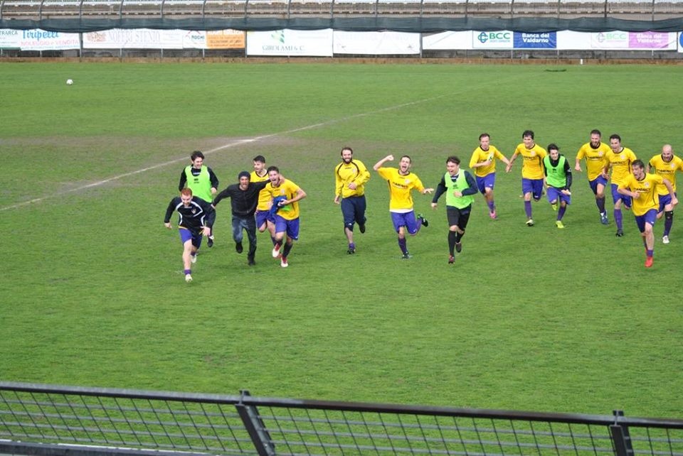 Una battaglia, sotto la pioggia battente. Un campo ai limiti della praticabilità. I ragazzi di Gennaioli espugnano lo stadio Del Buffa, tana del Valdarno FC, per 1-0 e tengono aperto il sogno salvezza.