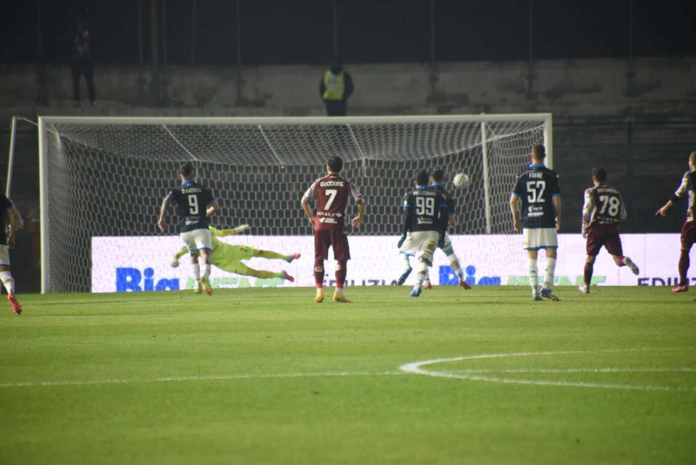 A rompere l’equilibrio sono gli ospiti dopo 15 minuti, grazie a un calcio di rigore trasformato dal numero 10 Bruzzaniti. L’azione nasce da un lancio lungo di Postiglione: Righetti sfiora di testa e mette fuori tempo Gilli, sul pallone si inserisce D’Andrea, che si ritrova solo davanti a Venturi. Il portiere amaranto è costretto ad abbatterlo in scivolata: l’arbitro non ha alternative, penalty e cartellino giallo per l’estremo difensore dell’Arezzo.