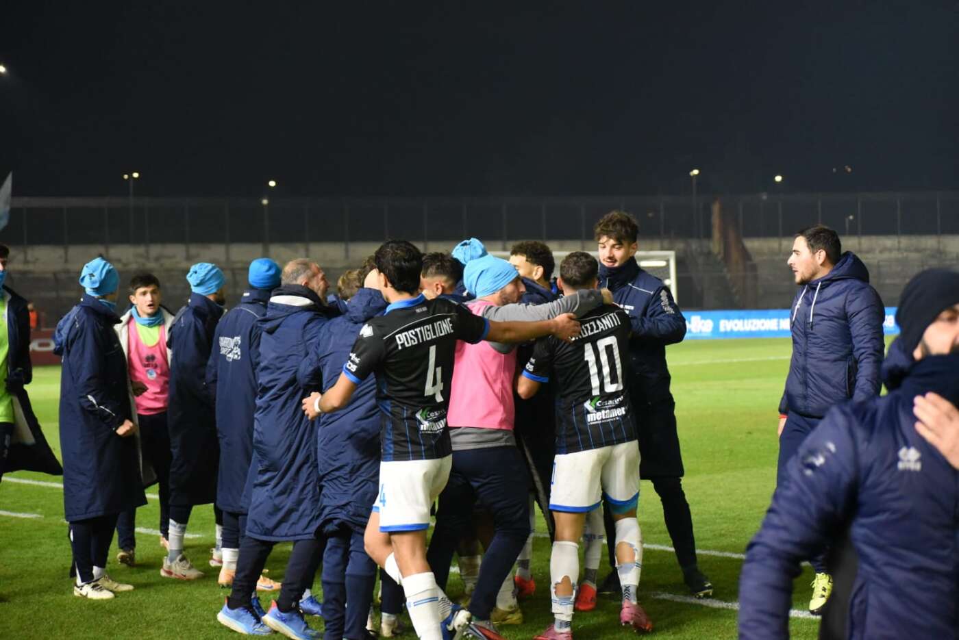 Dopo un lungo recupero e qualche protesta, l’arbitro Viapiana fischia la fine.