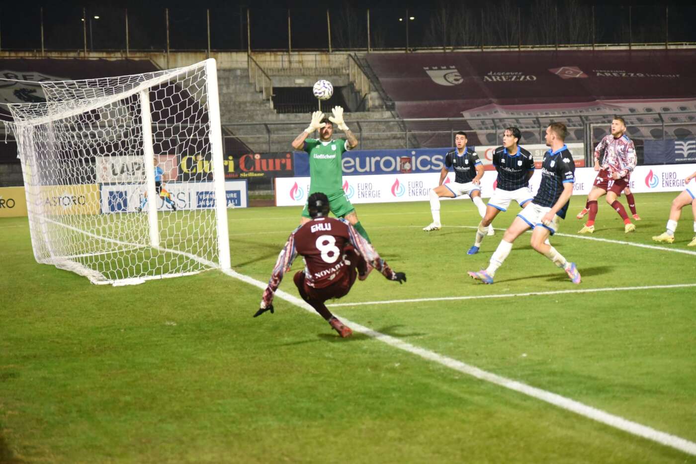Nel finale l’Arezzo non smette di crederci. Pattarello si accentra e conclude ancora, Ravasio prova la deviazione al volo su corner di Righetti, ma la mira non è precisa. L’ultima vera occasione arriva nel concitato finale, quando una conclusione dal limite sfiora il palo con Tonti ormai battuto: il gol del sorpasso sembra lì, ma non arriva.