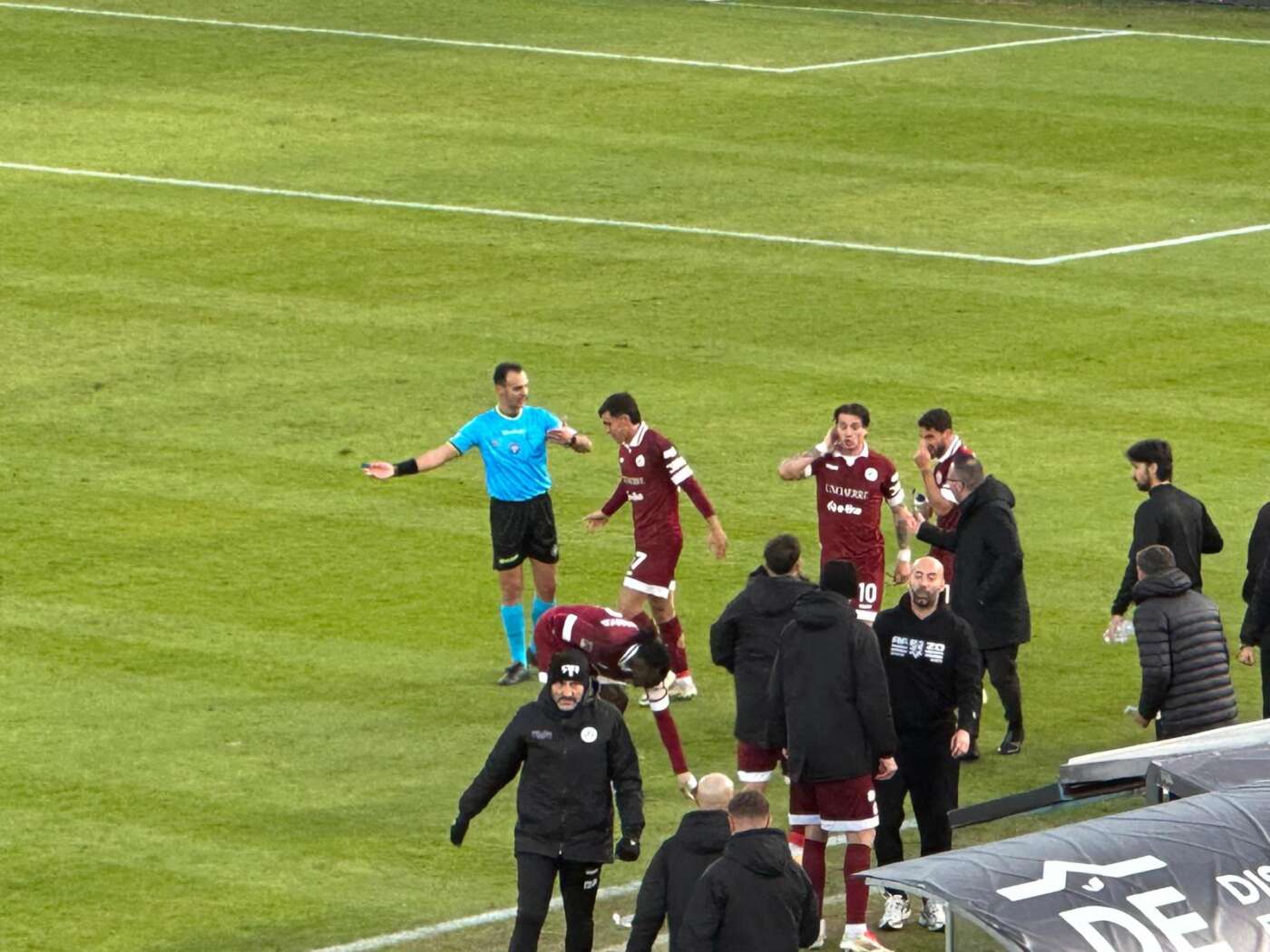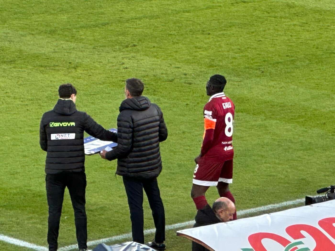 Al minuto 65 per spezzare una potenziale ripartenza, Righetti fa un fallo tattico e viene ammonito. Bucchi interviene subito al 66’: fuori Guccione già ammonito, dentro Mawuli con la protezione al volto.