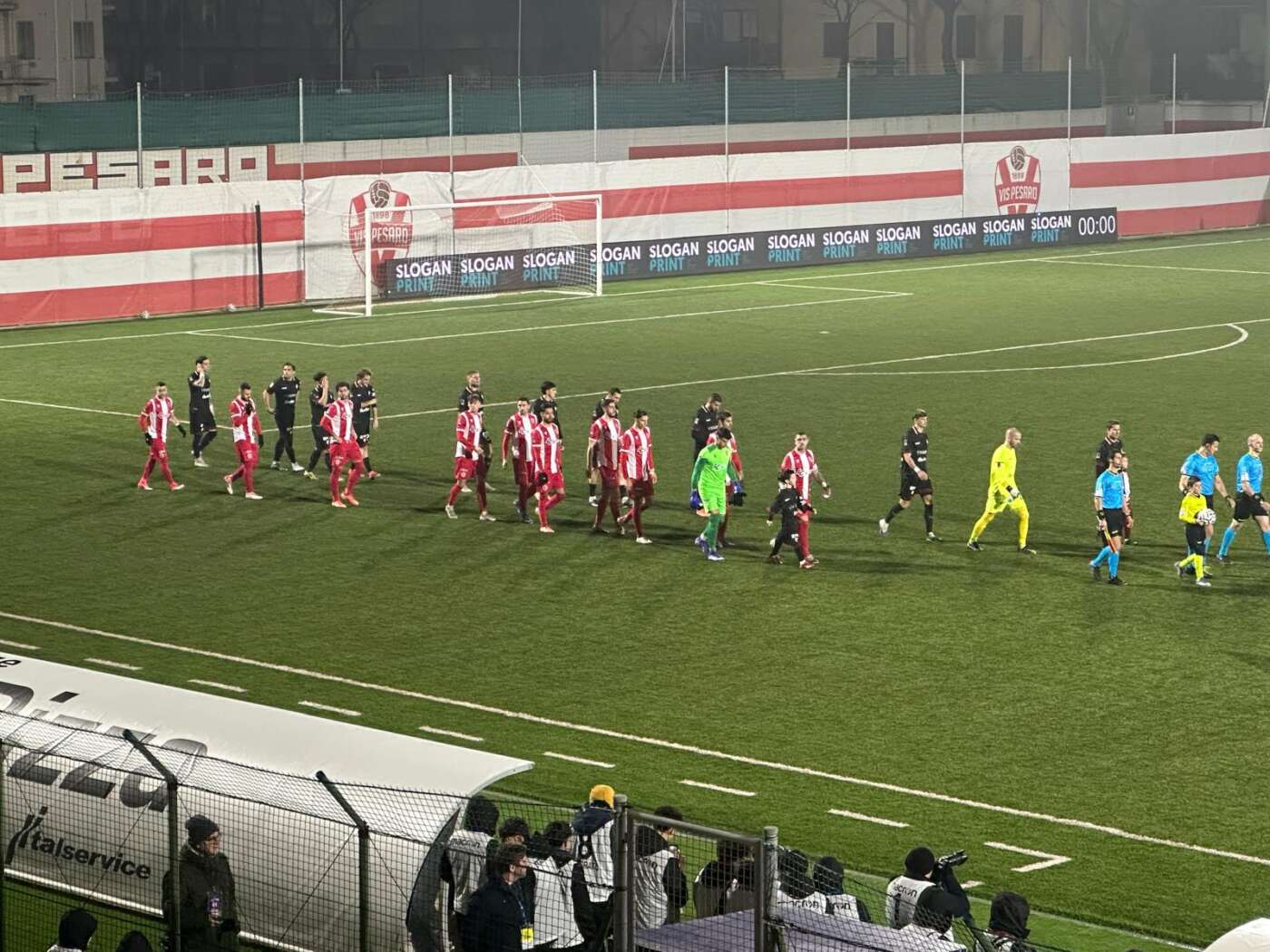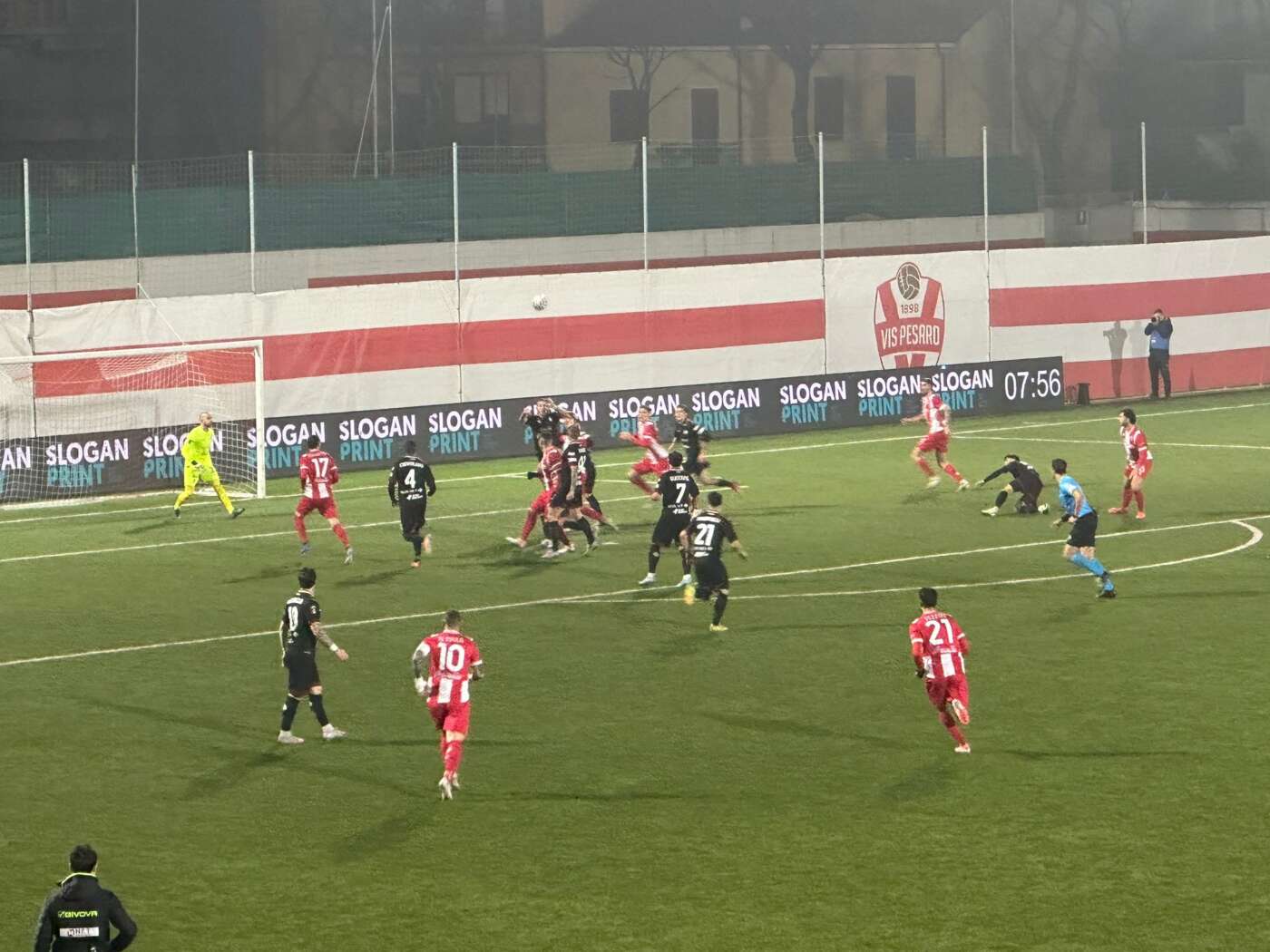 Vengono concessi sei minuti di recupero e proprio nel finale, al 50’, la Vis Pesaro va vicina al pareggio: Zoia sfonda a sinistra, serve per Nicastro che spedisce alto sopra la traversa.