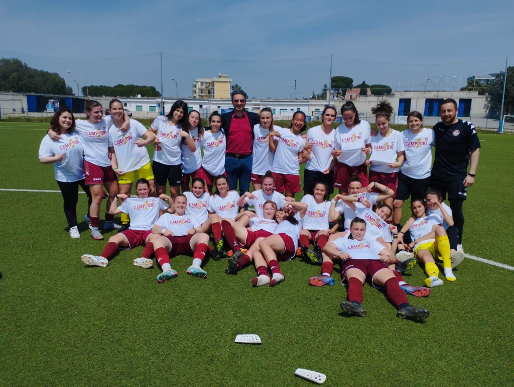 Sono le ragazze della Primavera amaranto, guidate da Mister Ilaria Leoni, che questa mattina sul campo dell’Apulia Trani (vincendo 0-5) hanno festeggiato la vittoria del campionato di Primavera 2 con due giornate di anticipo. Nella prossima stagione, quindi, per le cittine amaranto sarà Primavera 1, il massimo campionato nazionale giovanile.