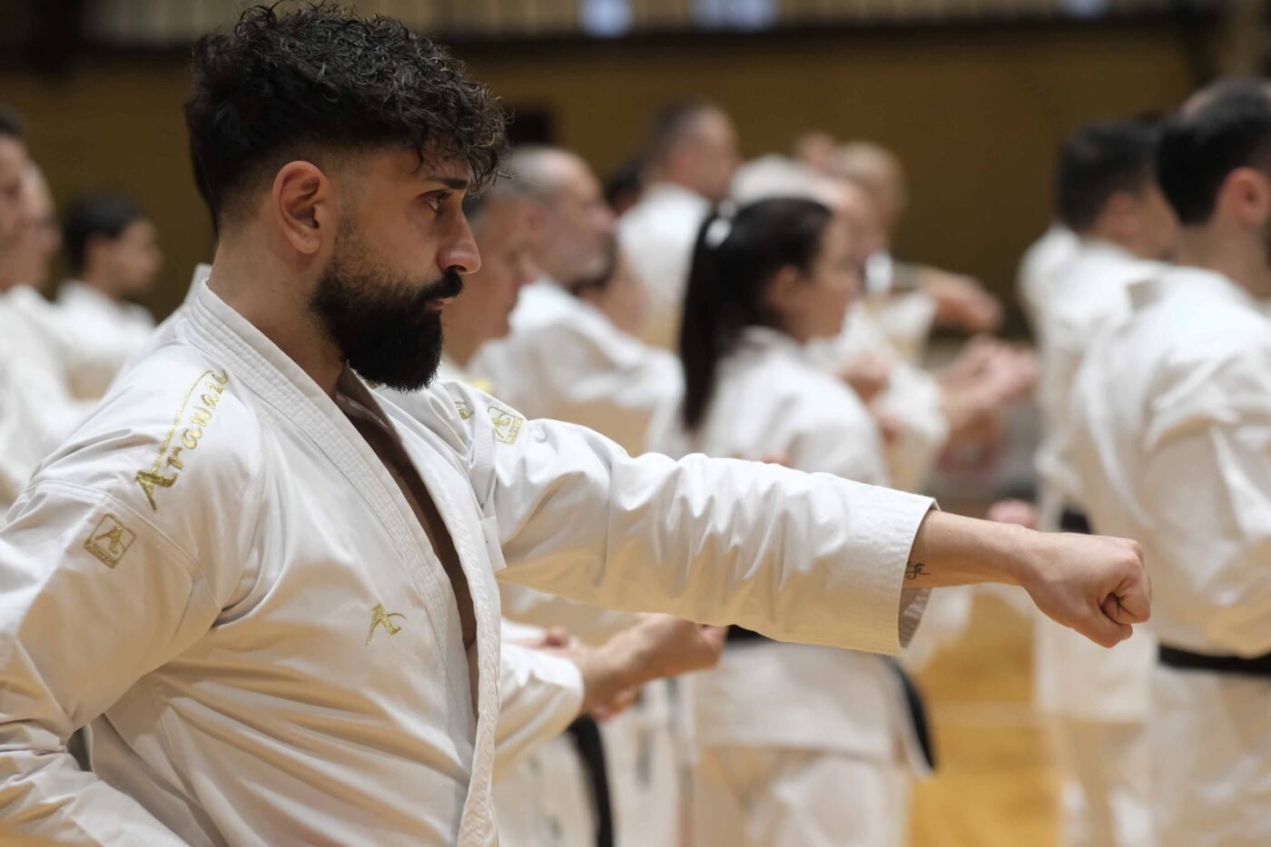 190 Cinture nere di Karate provenienti da tutta Italia e dall’estero, con delegazioni da Svizzera, Germania e Portogallo, al PalaGalli di San Giovanni Valdarno per partecipare allo stage formativo del Maestro Tanaka Sensei Sasa Takahashi, due volte campione di Kumite (tecnica) JKA Japan Allenatore della Nazionale Danese di Karate dal 1975 al 1978 e autore del libro “Perfecting Karate”. Nel corso dello stage sono stati assegnati i Dan. Il saluto del comune di San giovanni è stato portato dal Sindaco Vadi.