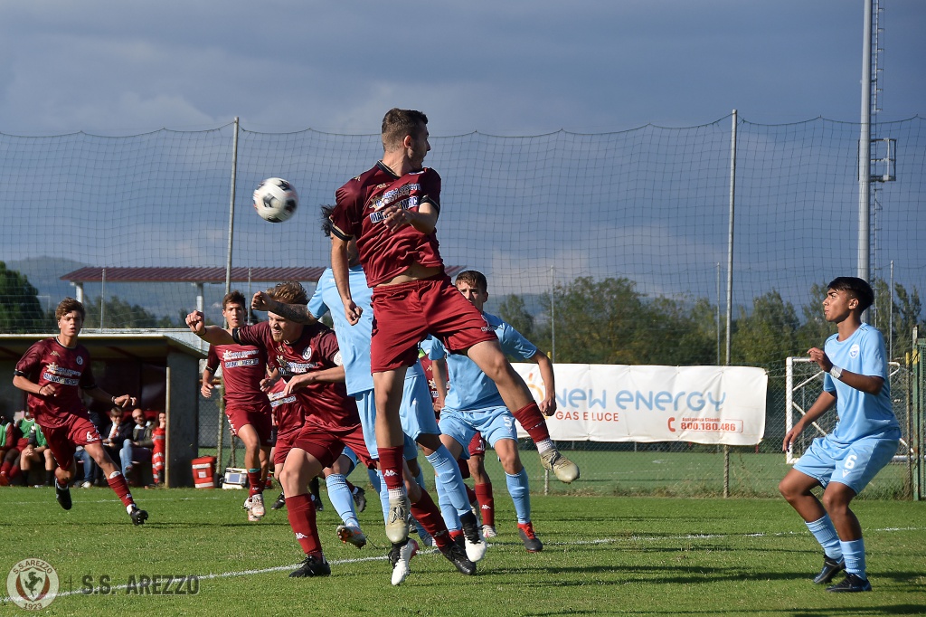 Esordio casalingo stagionale per i ragazzi di Massimiliano Bernardini contro i pari età dell’Audace Galluzzo. Partita sbloccata dai giovani amaranto al 31′ del primo tempo grazie ad una rete di Hilla. Nella ripresa i fiorentini trovano il pari dopo nove minuti della ripresa per merito di Canneva che mette la palla alle spalle di Limentra. Il pareggio dura solo sette minuti: ci pensa infatti Montanari al 16′ della ripresa a riportare l’Arezzo avanti regalando i meritati tre punti ai suoi. Domenica trasferta a Rufina.