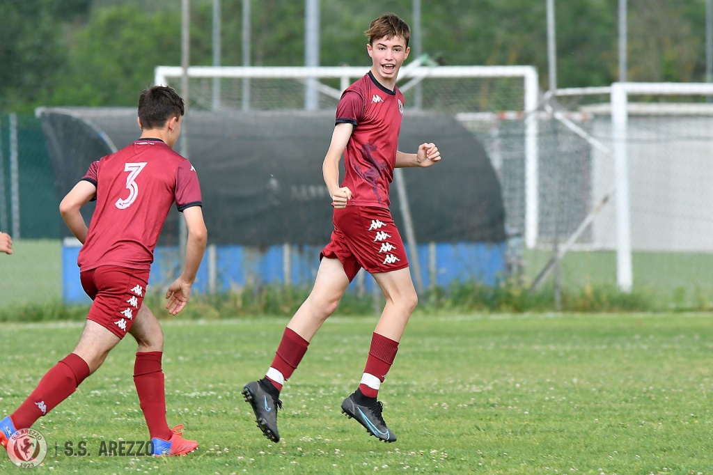 Nella penultima giornata della seconda ed ultima fase del proprio campionato i giovanissimi provinciali di mister Alessio Bianchi non falliscono il match-point a disposizione si aggiudicano la vittoria finale superando agevolmente nello scontro diretto la Sangiovannese. Amaranto avanti dopo 5 minuti grazie ad una rete di Aliaj con la Sangiovannese che trova il pari al 18′. L’Arezzo non si scompone e due minuti dopo Bernardini riporta i suoi in vantaggio. Nella ripresa ci pensano poi Fratini e Lanini su rigore ad arrotondare il punteggio per l’ottava vittoria consecutiva che significa vittoria del campionato.