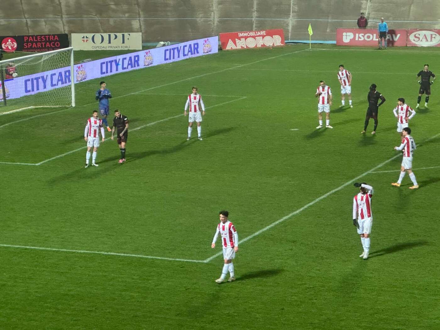 Dopo 49 minuti si va al riposo con il Forlì avanti 1-0.