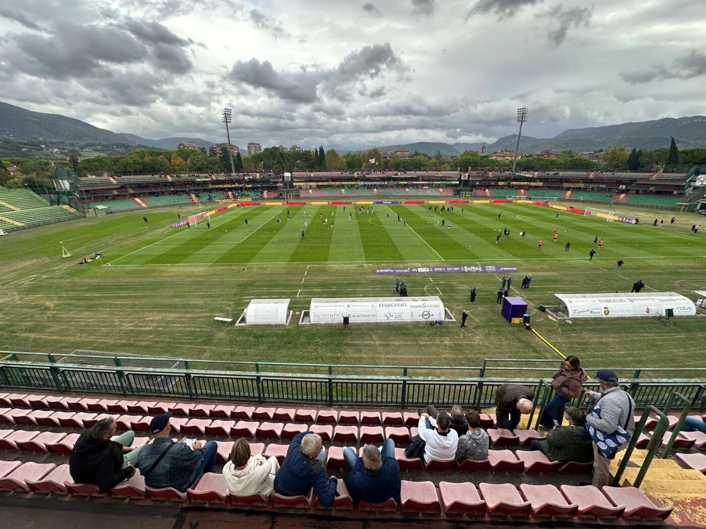 La Ternana e l’Arezzo chiudono sull’1-1 una gara intensa e molto combattuta, giocata su ritmi alti e con momenti di equilibrio in entrambe le metà campo. Per Cristian Bucchi arriva il primo pareggio dopo 26 partite (19 vittorie e 7 sconfitte): un punto prezioso, frutto di una prestazione non scintillante ma di grande solidità, ordine tattico e carattere. A sbloccare l’incontro, nel primo tempo, era stato Dubickas, con una conclusione precisa e potente che aveva portato in vantaggio la squadra di Liverani. Nella ripresa, la risposta amaranto è arrivata grazie al gol dell’ex Pietro Cianci, bravo a farsi trovare pronto sottoporta dopo una mischia in area e a firmare la rete dell’1-1 senza esultare per rispetto verso i suoi trascorsi in rossoverde. Nel finale, brivido per gli oltre 3.500 tifosi di casa: Pattarello trova il gol del possibile sorpasso su assist di Varela, al termine di un contropiede rapidissimo. Ma la rete viene annullata dopo revisione FVS per un fallo dello stesso Varela nella fase di recupero palla.