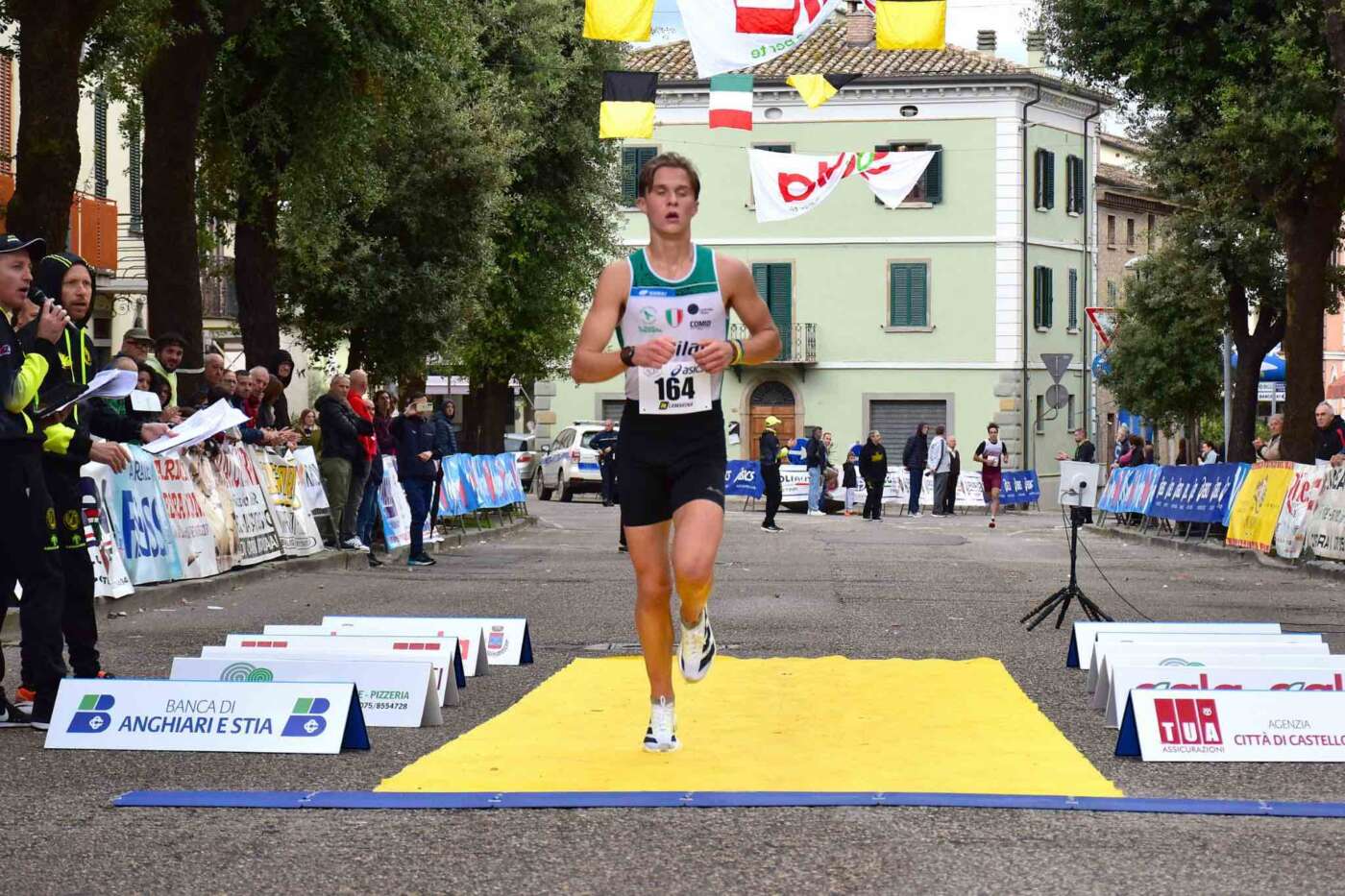 Federico Fragiacomo, portacolori della Trieste Atletica, ha conquistato il successo con una gara intelligente e coraggiosa. Ha imposto il ritmo sin dalle prime fasi, tallonato da un terzetto di atleti aretini —Stefano Zanti (atletica Unicusano di Livorno) , Giovanni Scatizzi (G.P.Parco alpi apuane di Lucca) , Michele Pastorini (U.P.Policiano) e Andrea Lombardo (atletica Umbertide), — che hanno resistito al passo del battistrada fino quasi all’5°km dalla conclusione. Nel finale, Fragiacomo ha allungato con decisione staccando prima Pastorini poi Lombardo (vincitore dell’edizione 2024) poi Zanti ed infine il più tenace a resistere Scatizzi, andando a tagliare il traguardo in solitario con il tempo di 43’53” su Scatizzi staccato di circa 40” Zanti di 50” mentre 4° Pastorini a circa 60” che nel finale supera Lombardo 5° , da notare che nei primi 21 posti la Polisportiva Policiano a piazzato ben 9 atleti.