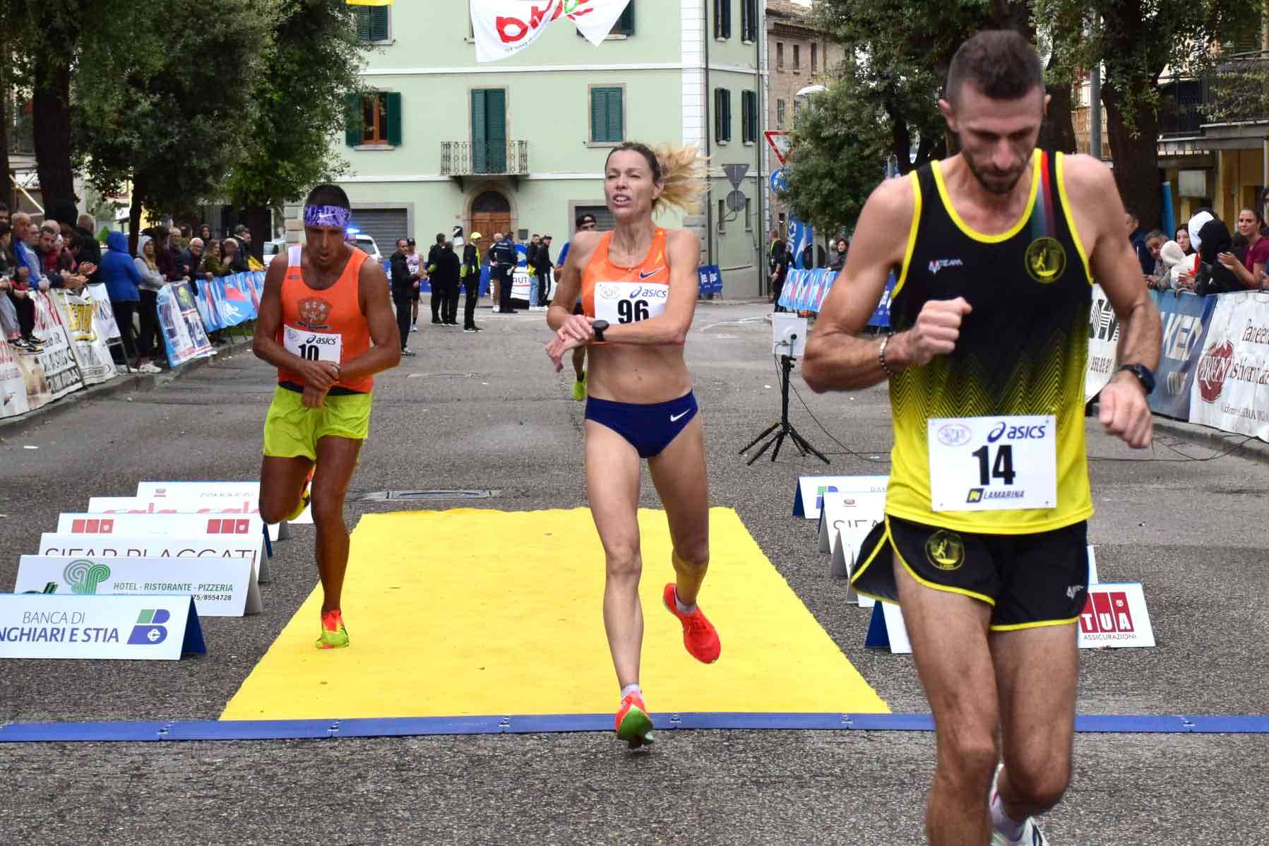 Netto dominio in campo femminile di Silvia Tamburi dell’Avis Perugia, che ha preso il comando della gara fin dai primi chilometri terminando con il tempo di 50’42. Alle sue spalle staccata di circa 30” l’altra perugina Giulia Giorgi (Corradini Rubiera) che ha cercato il recupero nella parte centrale della gara, avvicinandosi sensibilmente, ma senza riuscire a colmare il distacco. Dietro, un compatto quartetto della Polisportiva Policiano formato da Giulia Sadocchi , Noemi Trippi, Valentina Mattesini e Rodriguez Deyanira che hanno inseguito con decisione ma senza riuscire a impensierire le due battistrada.