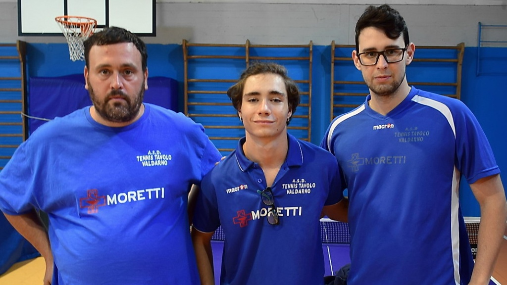 Nell’immagine: la formazione del TT Valdarno che partecipa al campionato di Serie D1. Da sinistra verso destra Francesco Bagnolesi, Francesco Martinino e William Deventi.