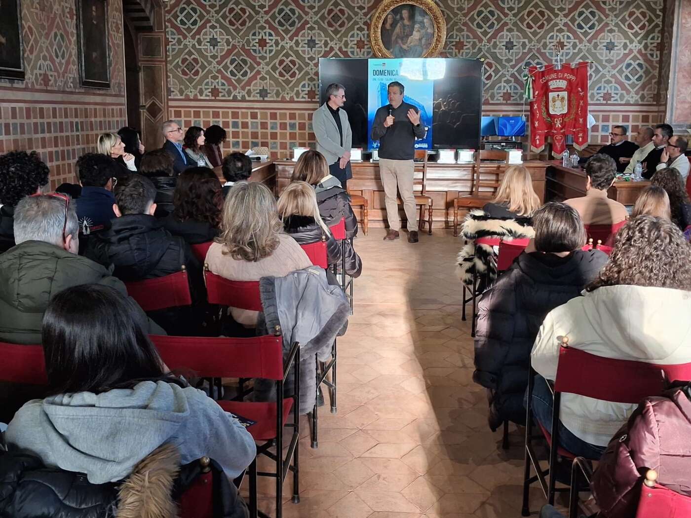 Poppi – Federica Lisi Bovolenta ha presentato il docufilm portato al Giffoni Film Festival, che uscirà in Primavera; premiata a distanza Laura Abenante che si trova alla Coppa del Mondo di karate in Georgia; il tedoforo casentinese Federico Caleri ha donato la sua divisa al comune.