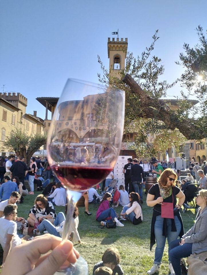 La piazza vestita in verde con l’allestimento del prato con olivi secolari e botti ha colpito tutti i presenti. Un’immagine diversa di piazza Cavour, di grande convivialità. Elegante piazza Masaccio, con gli stand delle cantine collocate tra Palazzo d’Arnolfo e la Basilica.