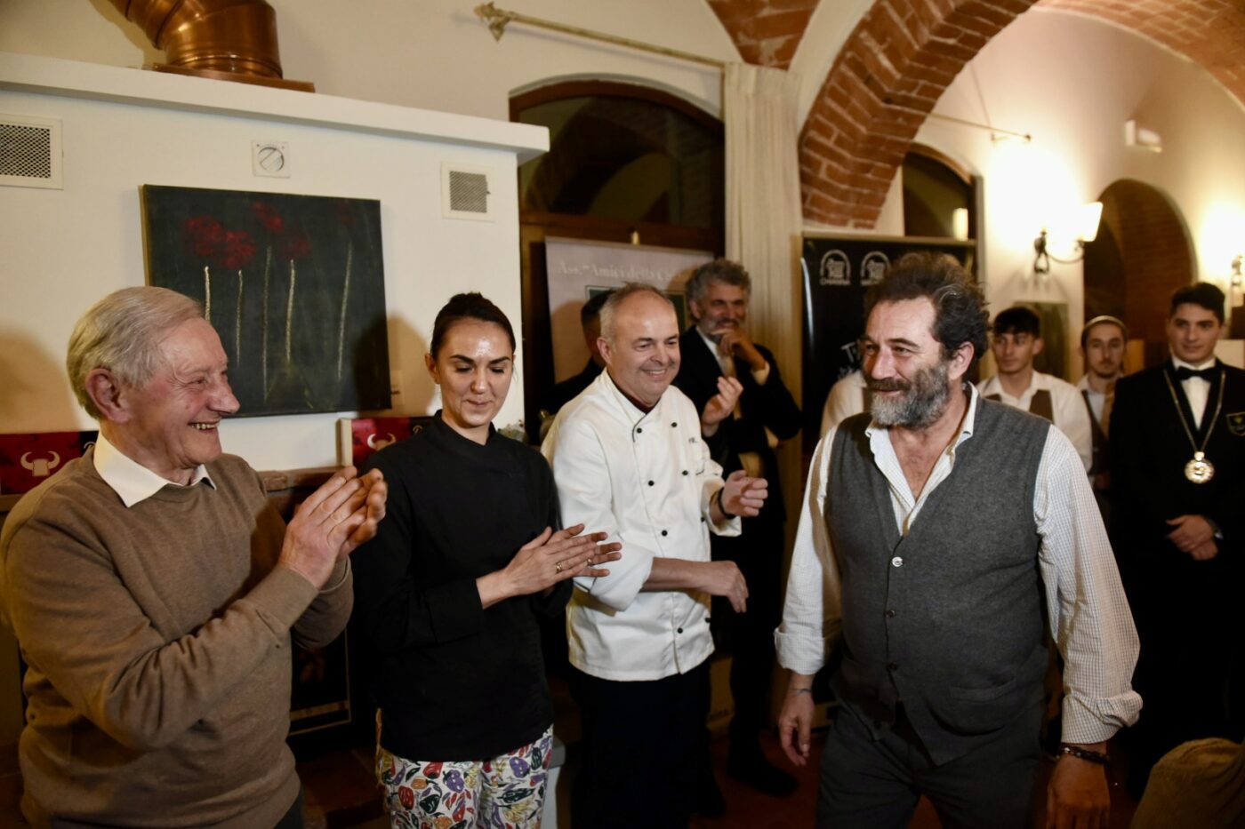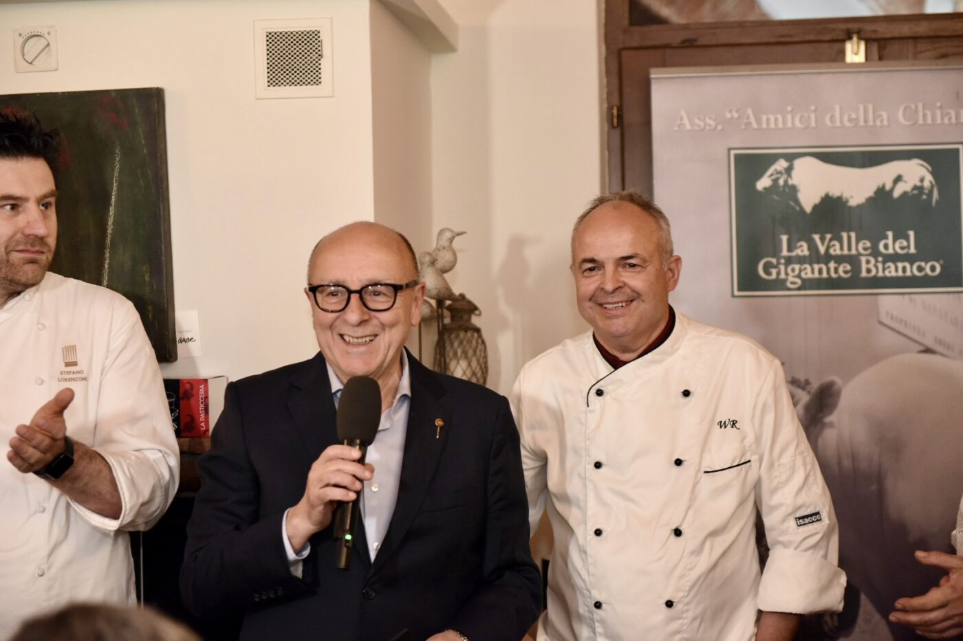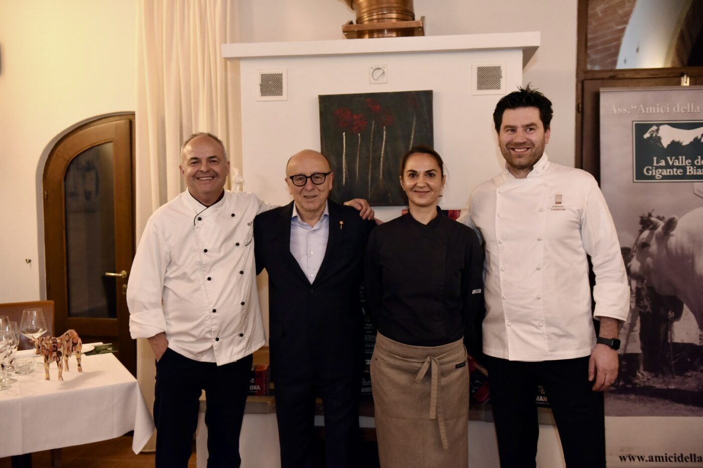 Un successo e sold out anche la terza tappa di Chianina in Tavola in Tour, il format culinario organizzato dal Consorzio di Tutela Vitellone Bianco dell’Appennino Centrale IGP e l’associazione ‘Amici della Chianina’, ospitata al ristorante ‘Walter Redaelli’ di Bettolle (Si), dove lo chef resident Walter Redaelli ha deliziato, con la lady chef Ramona Dobre di ‘Qui Ciccia’ di Monte San Savino (Ar) i palati di quaranta gourmet. Ad aprire la serata golosa il ‘Pan Chianina’ del Maestro Pasticcere Stefano Lorenzoni. A seguire l’Insalata tiepida di trippa, nervetti di Chianina con agresto e verdure primaverili croccanti Paté di fegato al vin santo” di Walter Redaelli accompagnata dal ‘Bianco Boscarelli Montepulciano IGT 2022’ servito da sommelier Fisar delegazione Valdichiana; il ‘Risotto con guancia di Chianina brasata chips di parmigiano croccante e ristretto al Chianti’ di Ramona Dobre accompagnato dal ‘Prugnolo Vino rosso Montepulciano DOC 2023 Boscarelli’; il ‘Diaframma di Chianina con bieta e cinta senese, salsa al vino di Montepulciano’ di Walter Redaelli con ‘Boscarelli Vino Nobile di Montepulciano DOCG riserva 2020’ e gli ‘Gnocchi di crema savinesi al profumo di cannella e ribes rosso’ di Ramona Dobre con ‘Boscarelli Vin Santo di Montepulciano DOC riserva 2016’. Finalità di Chianina in Tavola in Tour è la valorizzazione della carne di razza Chianina certificata Vitellone Bianco dell’Appennino Centrale IGP attraverso il suo legame con il territorio di origine e un corretto utilizzo in cucina per apprezzarne al meglio la qualità. Prossimi appuntamenti: il 27 marzo a Monte San Savino da Qui Ciccia, dove Walter Radaelli ricambierà la visita della Lady Chef Ramona Dobre e il 3 aprile a Chiusi (Si) dove al Ristorante I Salotti di Villa Il Patriarca la Lady Chef Katia Maccari riceverà la visita della Lady Chef Silvia Baracchi de Il Falconiere di Cortona.