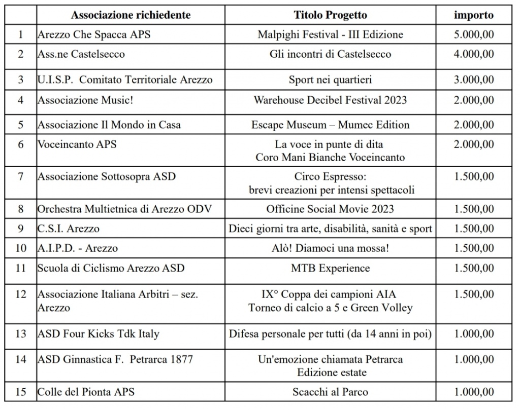 “È la parte ‘estiva’ del bando che complessivamente destina 45mila euro – commenta l’assessore Federico Scapecchi. Di questi, ne impegniamo adesso 30mila per 15 progetti che da giugno a settembre daranno vita a tantissimi eventi e iniziative. Una conferma della vitalità delle realtà associative locali e dell’attenzione che l’amministrazione comunale riserva loro stimolandone e finanziandone la creatività. Complimenti ai primi tre classificati ma complimenti a tutti i selezionati a cui va un plauso e un ringraziamento per il ruolo fondamentale che giocano nella valorizzazione del mondo giovanile. Ricordo infine, terminata l’estate, che c’è l’appuntamento con i restanti 15mila euro per nuovi progetti stavolta articolati in autunno”.
