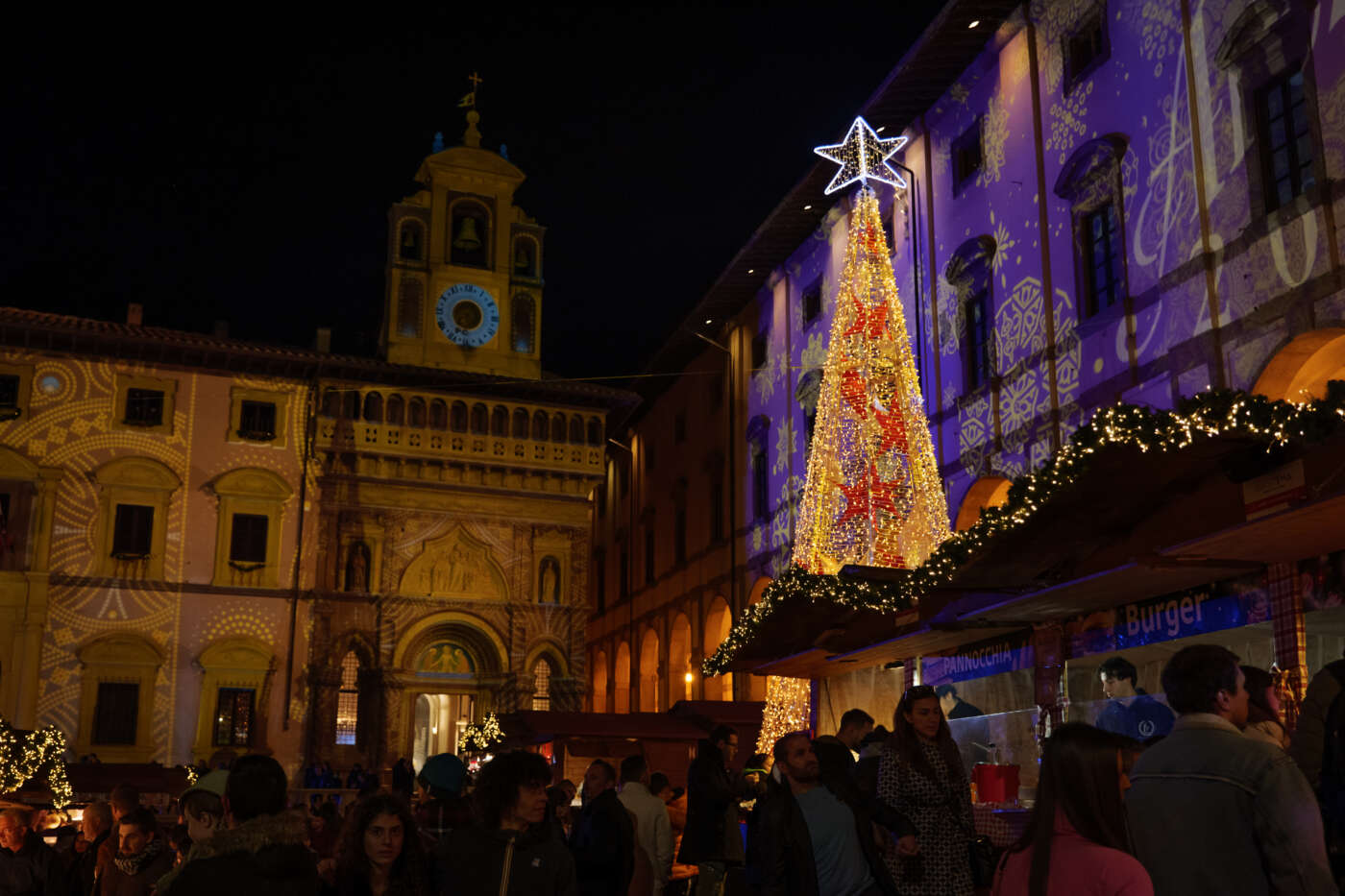 Tra le novità più attese il videomapping d’autore firmato da PlayMarche e Elodie Poidatz. Dal 15 novembre 2025 al 6 gennaio 2026 il centro storico aretino si veste a festa.